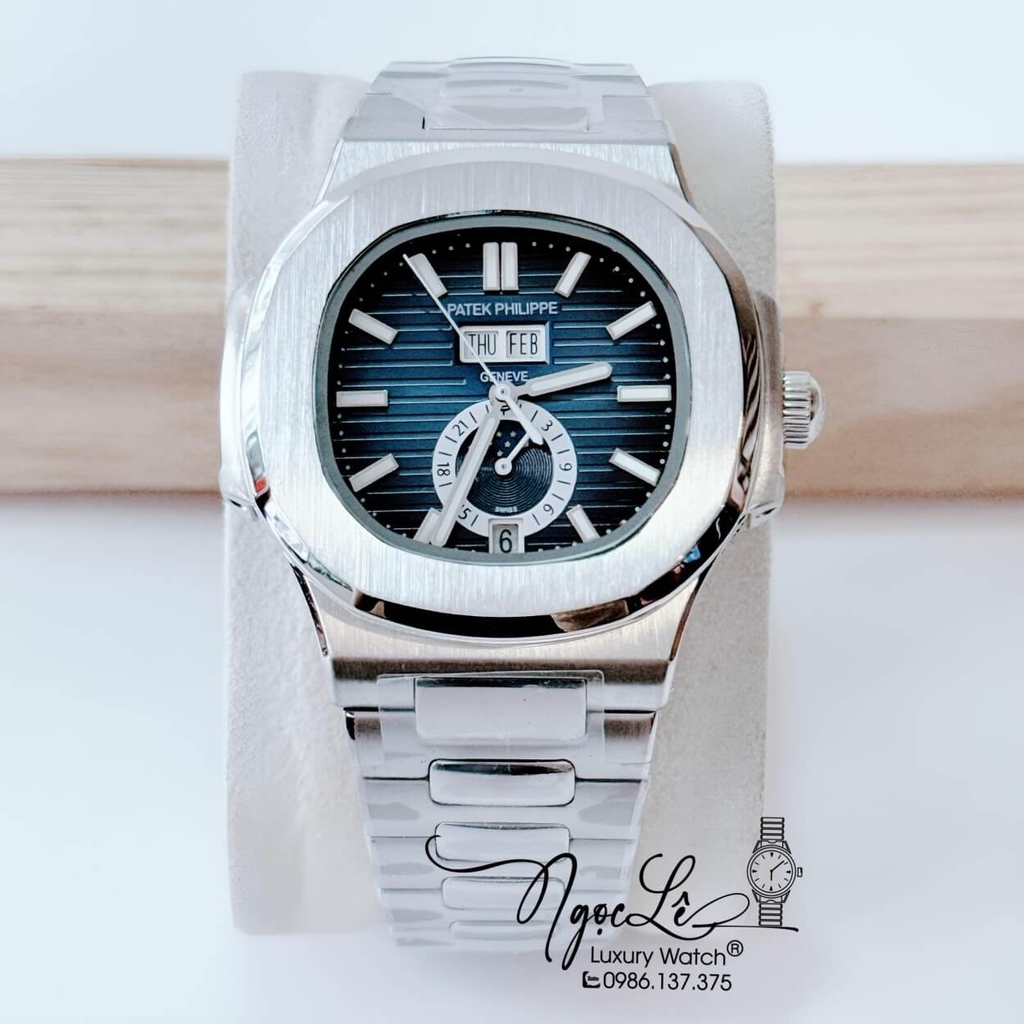 Hình ảnh thực tế đồng hồ Patek Philippe nam máy cơ tự động siêu cấp - Đồng Hồ Nam Patek Philippe Nautilus Tự Động Dây Kim Loại Silver Mặt Ombre Xanh Dương Đậm Size 40mm