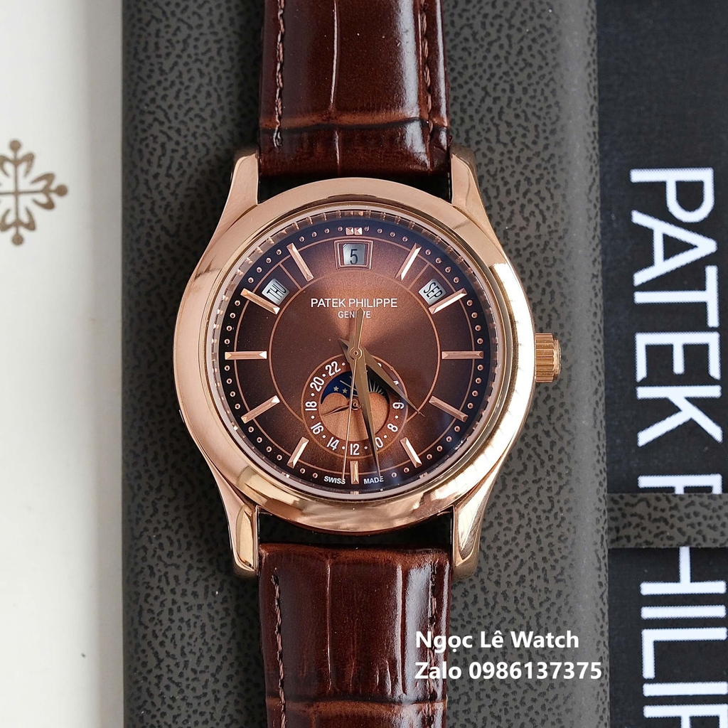 Đồng Hồ Nam Patek Philippe Tự Động Dây Da Nâu Mặt Nâu Size 40mm - Vỏ Rose Gold