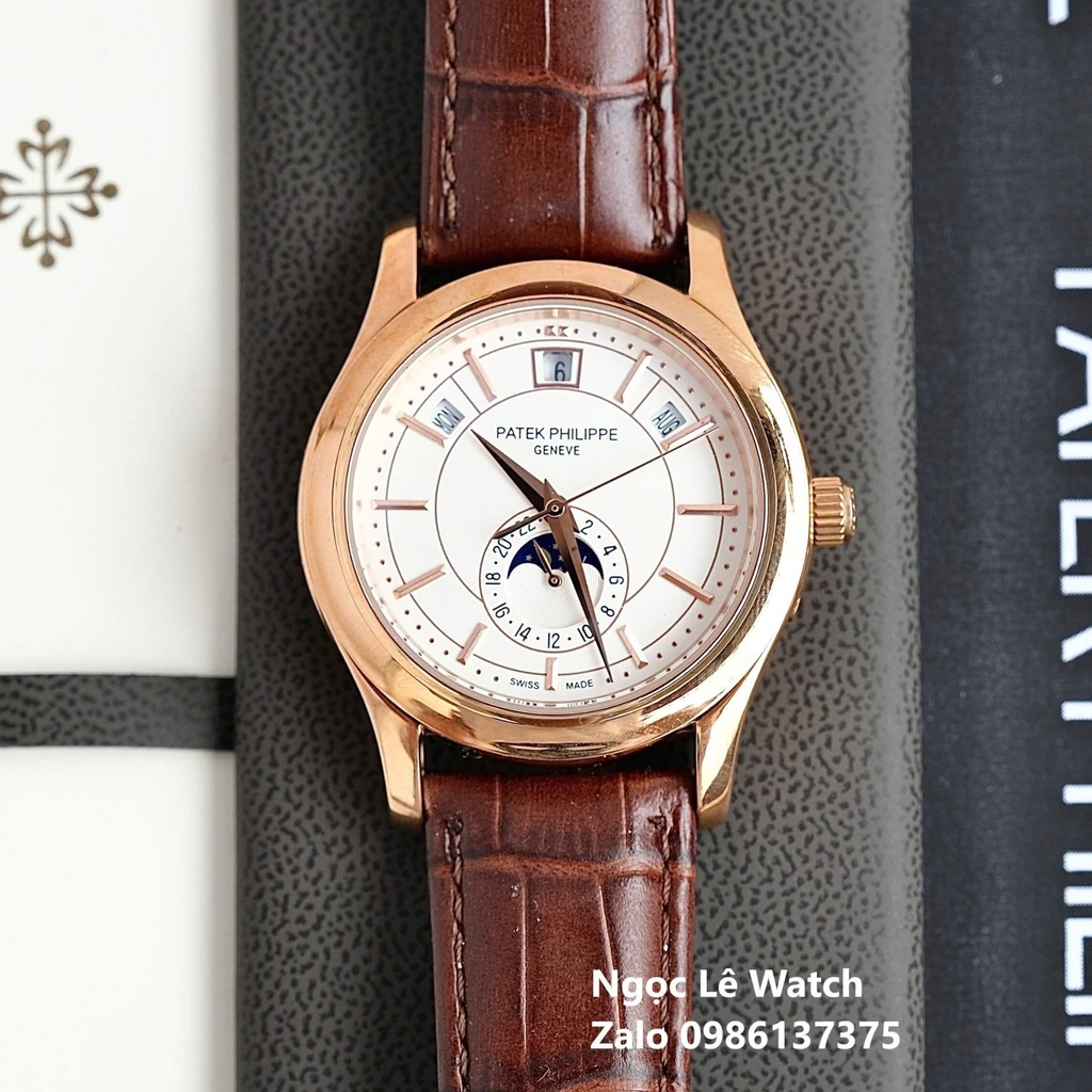 Đồng Hồ Nam Patek Philippe Automatic Dây Da Nâu Mặt Trắng Vỏ Rose Gold Size 40mm – Thanh Lịch & Đẳng Cấp Cổ Điển