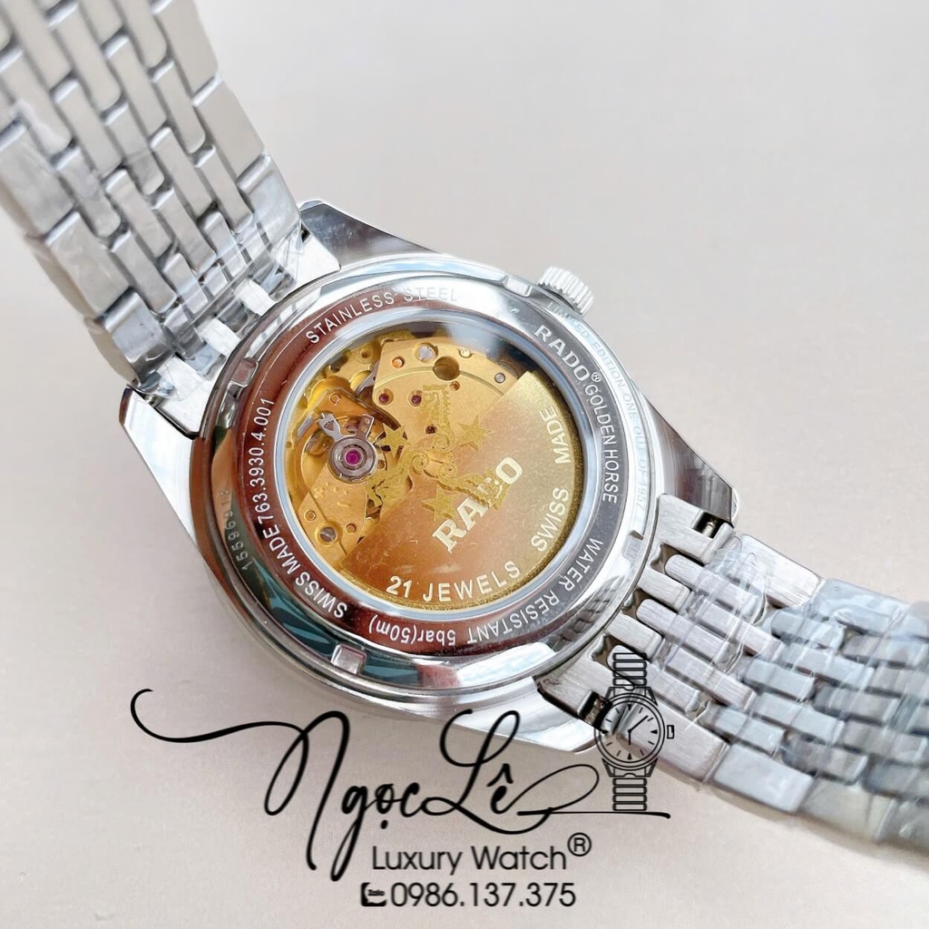Hình ảnh Đồng Hồ Nam Rado Golden Horse Automatic Cao Cấp Dây Bạc Mặt Đen Size 40mm - Sapphire