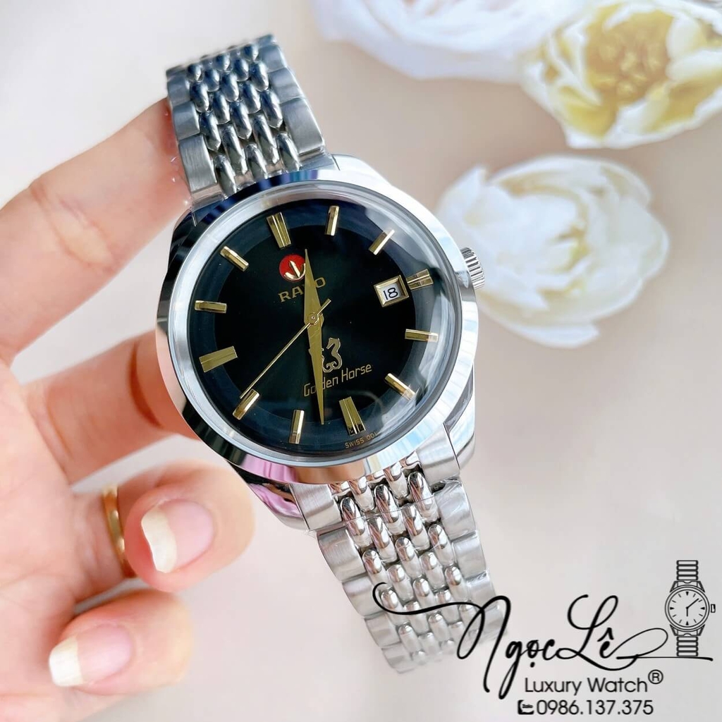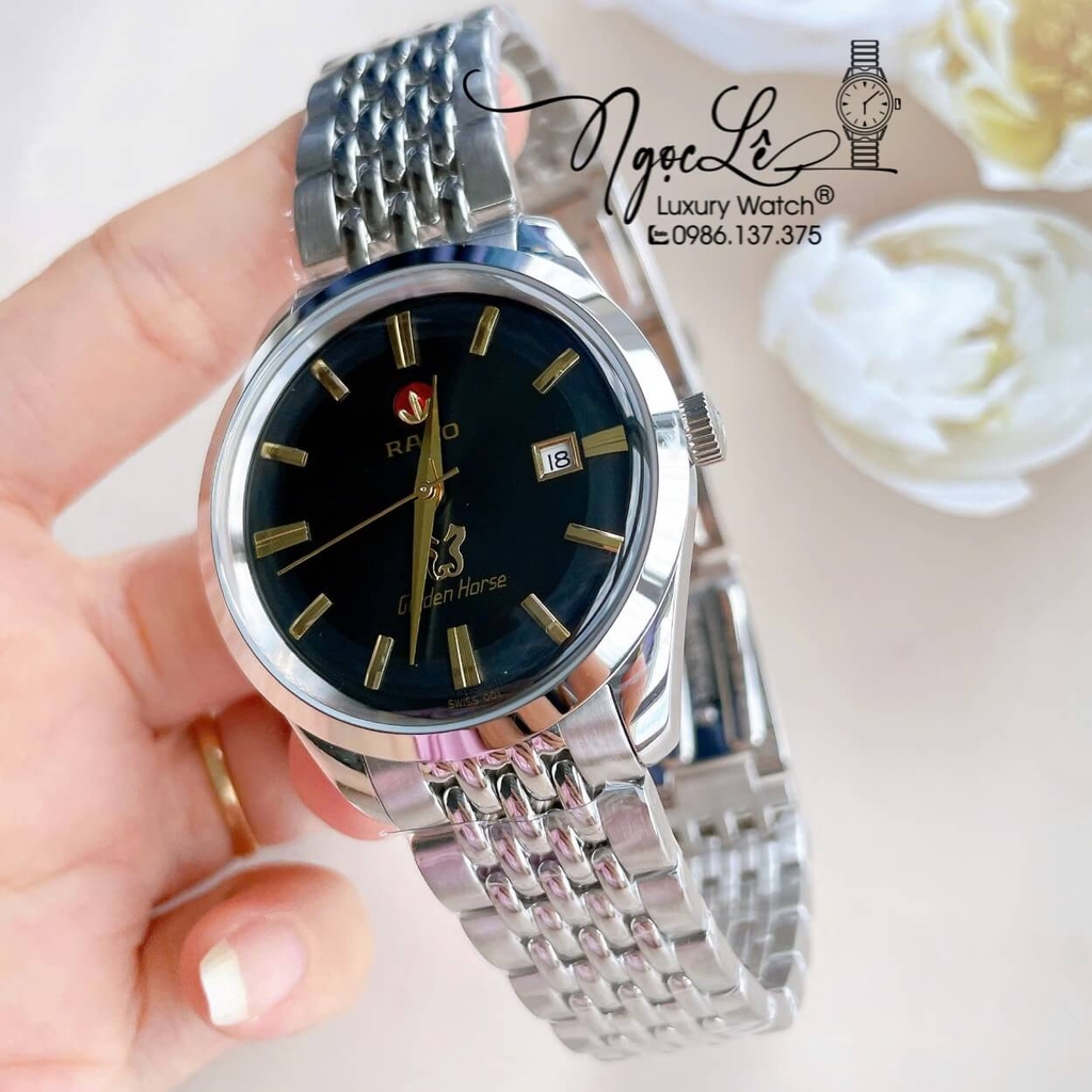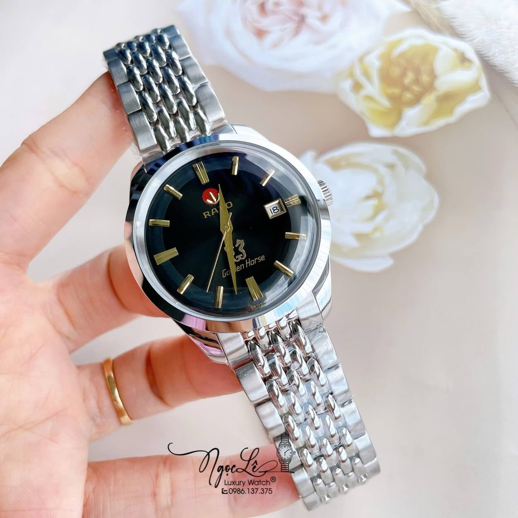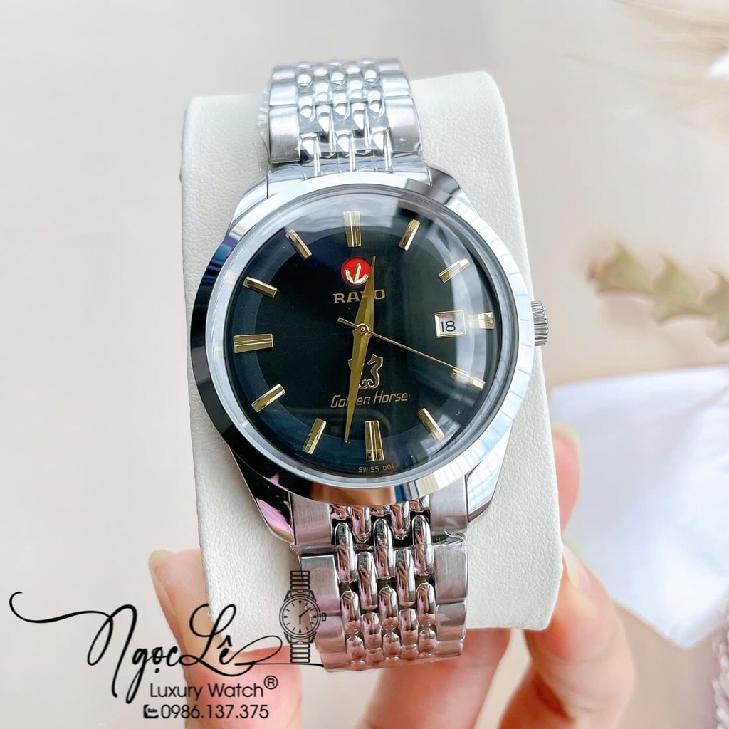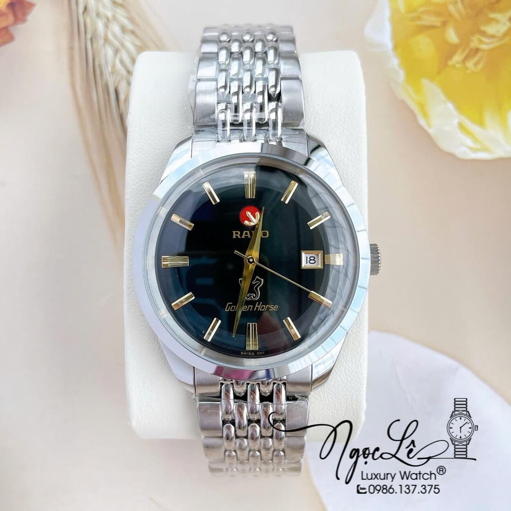 Đồng Hồ Nam Rado Golden Horse Automatic Cao Cấp Dây Bạc Mặt Đen Size 40mm - Sapphire