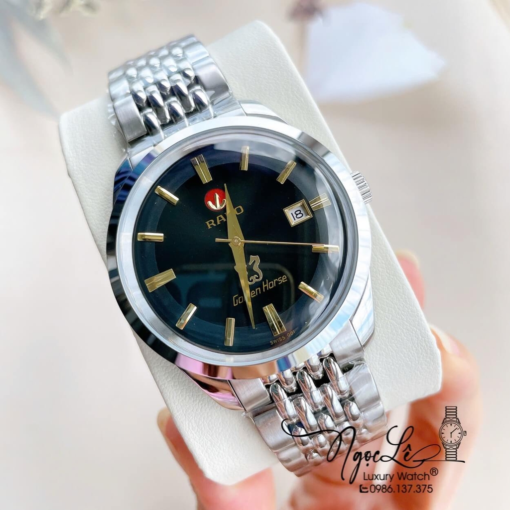 Đồng hồ Rado nam, Rado Golden Horse Automatic – biểu tượng của sự sang trọng và đẳng cấp vượt thời gian. Mặt đen huyền bí kết hợp dây bạc thép không gỉ tạo nên phong thái mạnh mẽ, nam tính, phù hợp cho những quý ông yêu thích sự tinh tế và bản lĩnh.