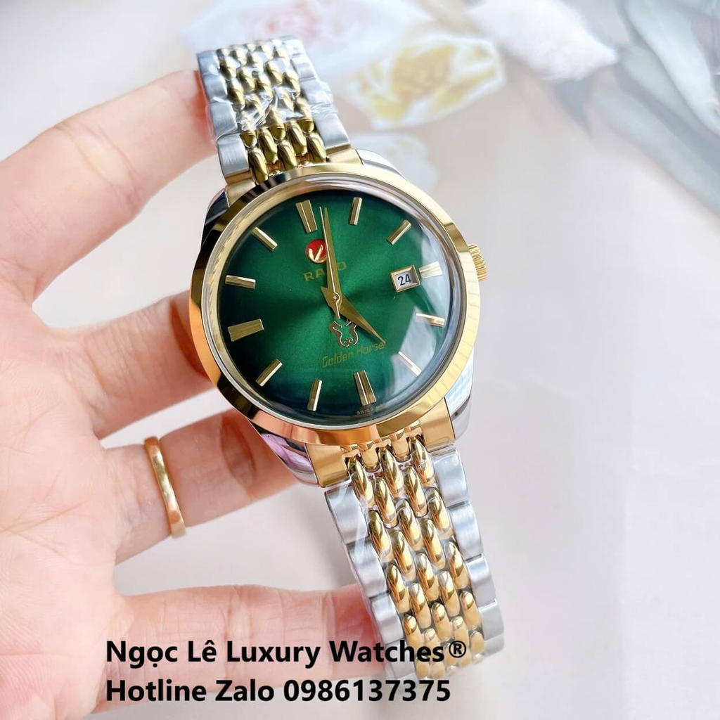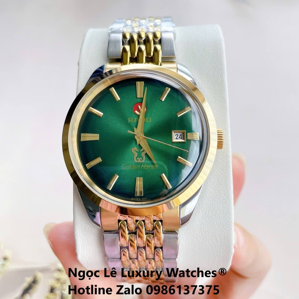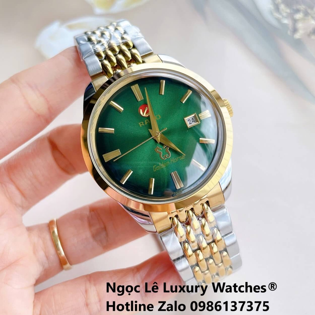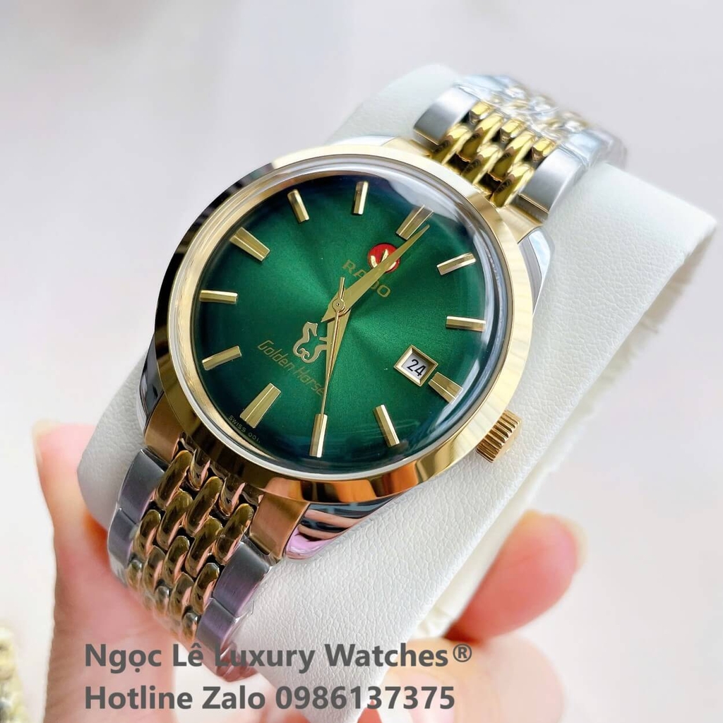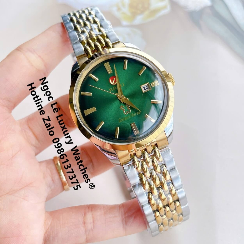 Đồng Hồ Nam Rado Golden Horse Automatic Cao Cấp Dây Demi Vàng Mặt Ombre Xanh Lá Size 40mm – Sapphire