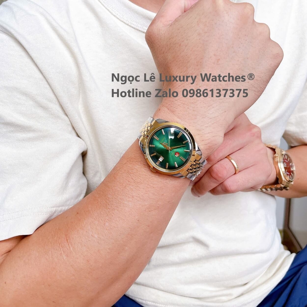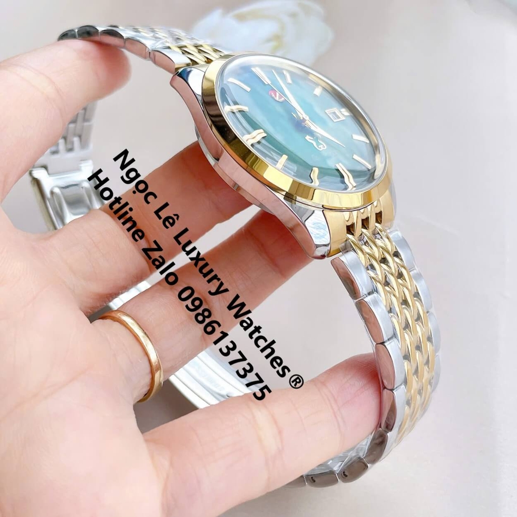 – Mặt số ombre xanh lá phối dây demi vàng thời thượng