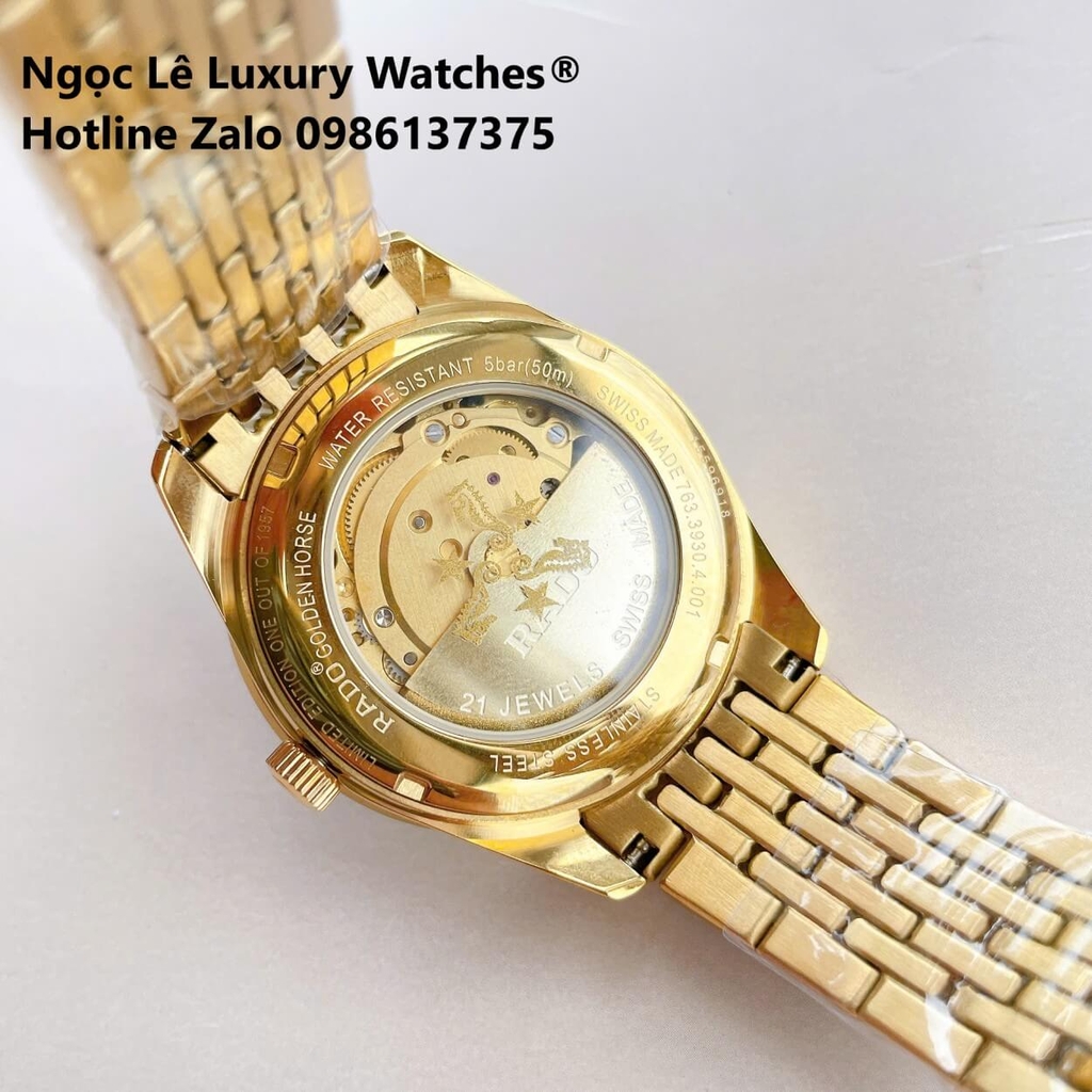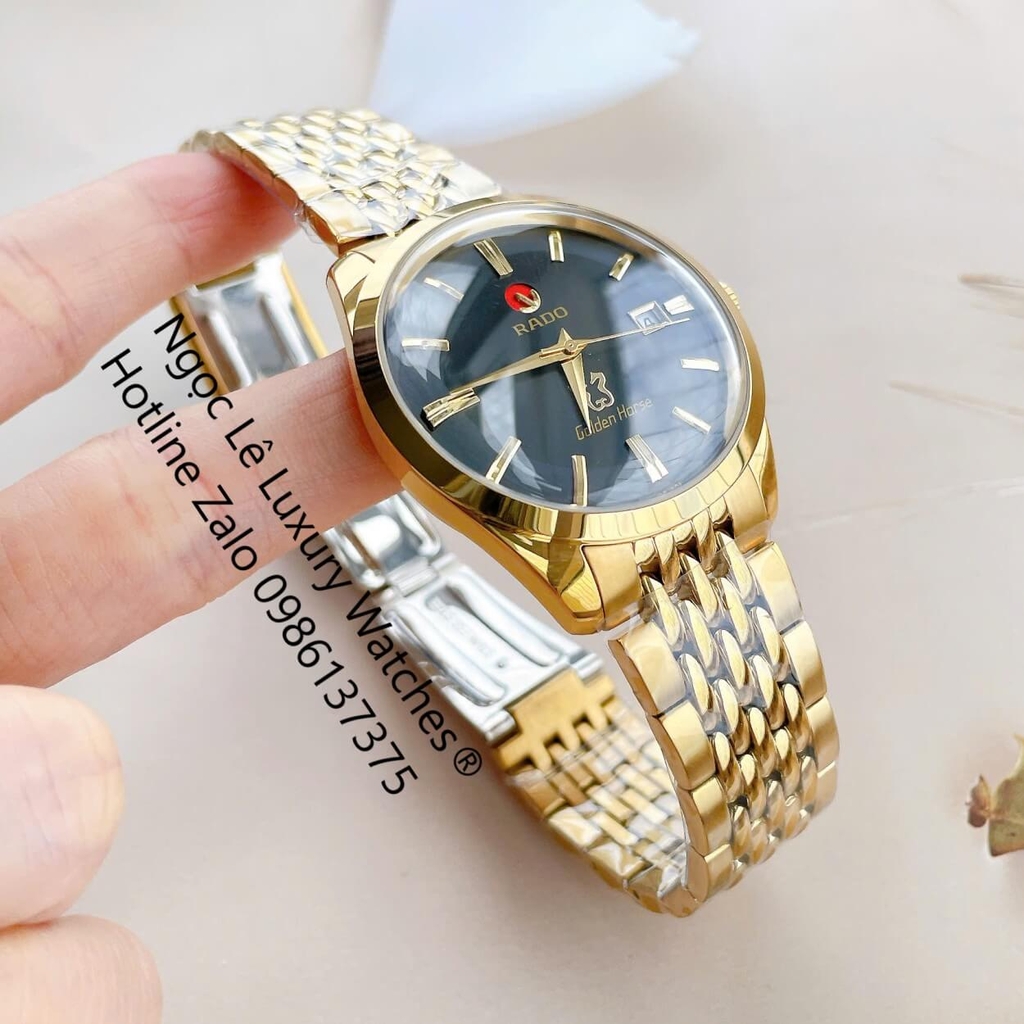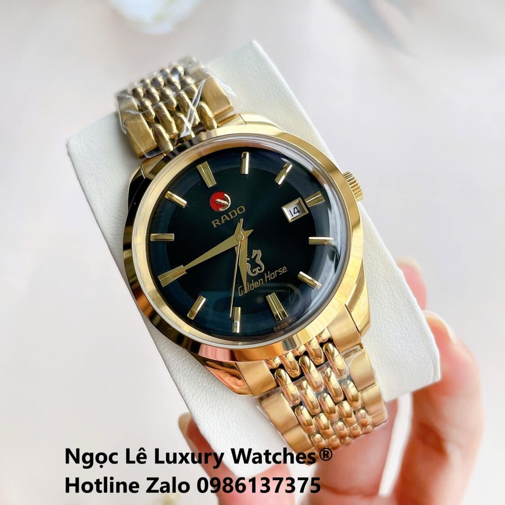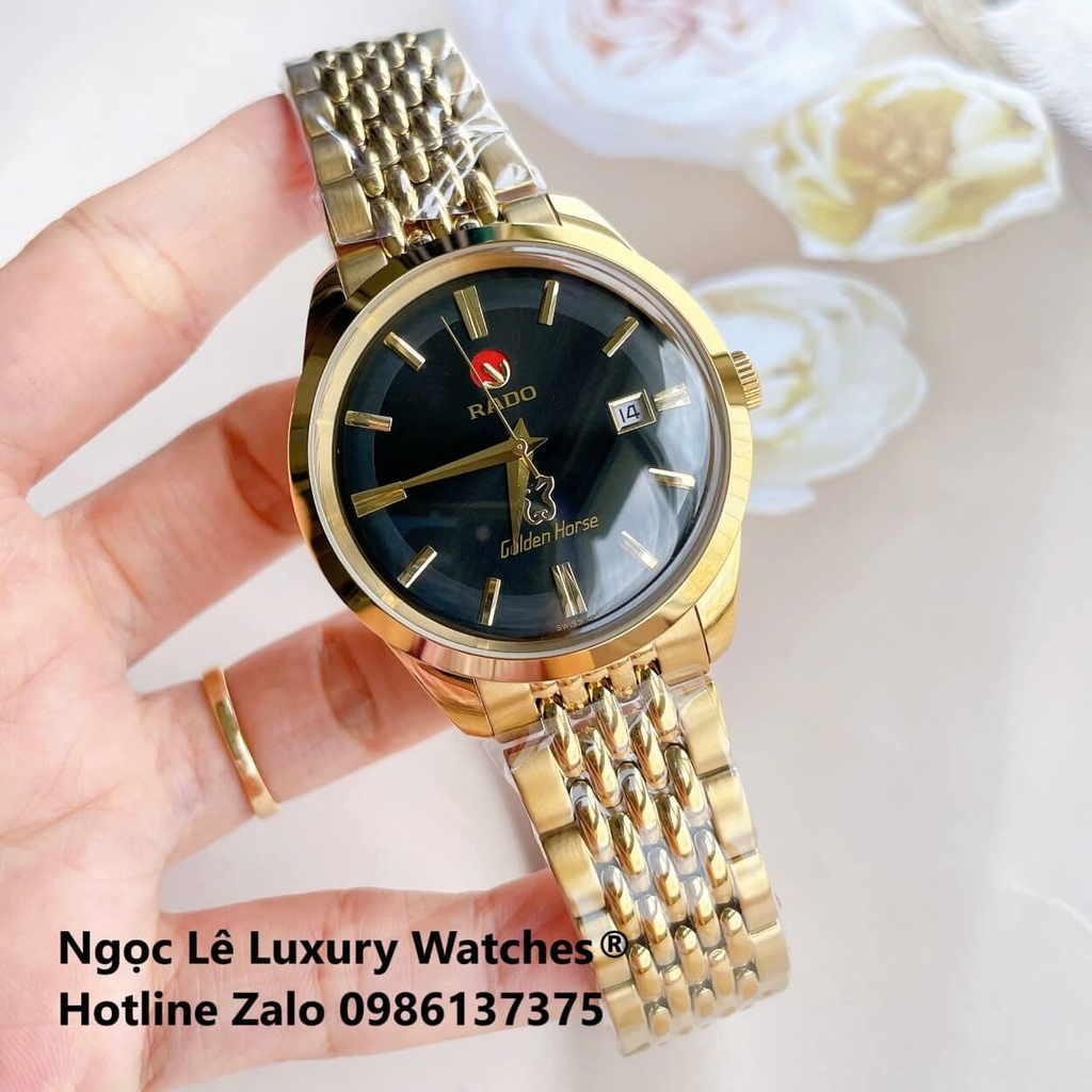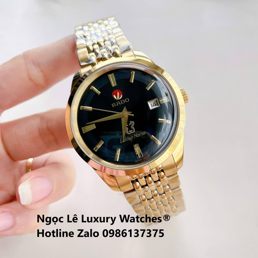 Đồng Hồ Nam Rado Golden Horse Automatic Cao Cấp Dây Vàng Mặt Đen Size 40mm – Sapphire