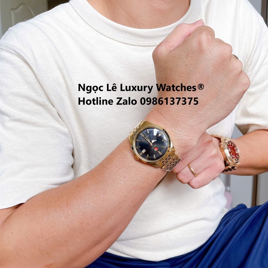 – Kiểu mặt: Tròn – 12 vạch chỉ giờ, lịch ngày vị trí 3h