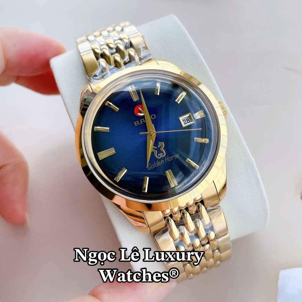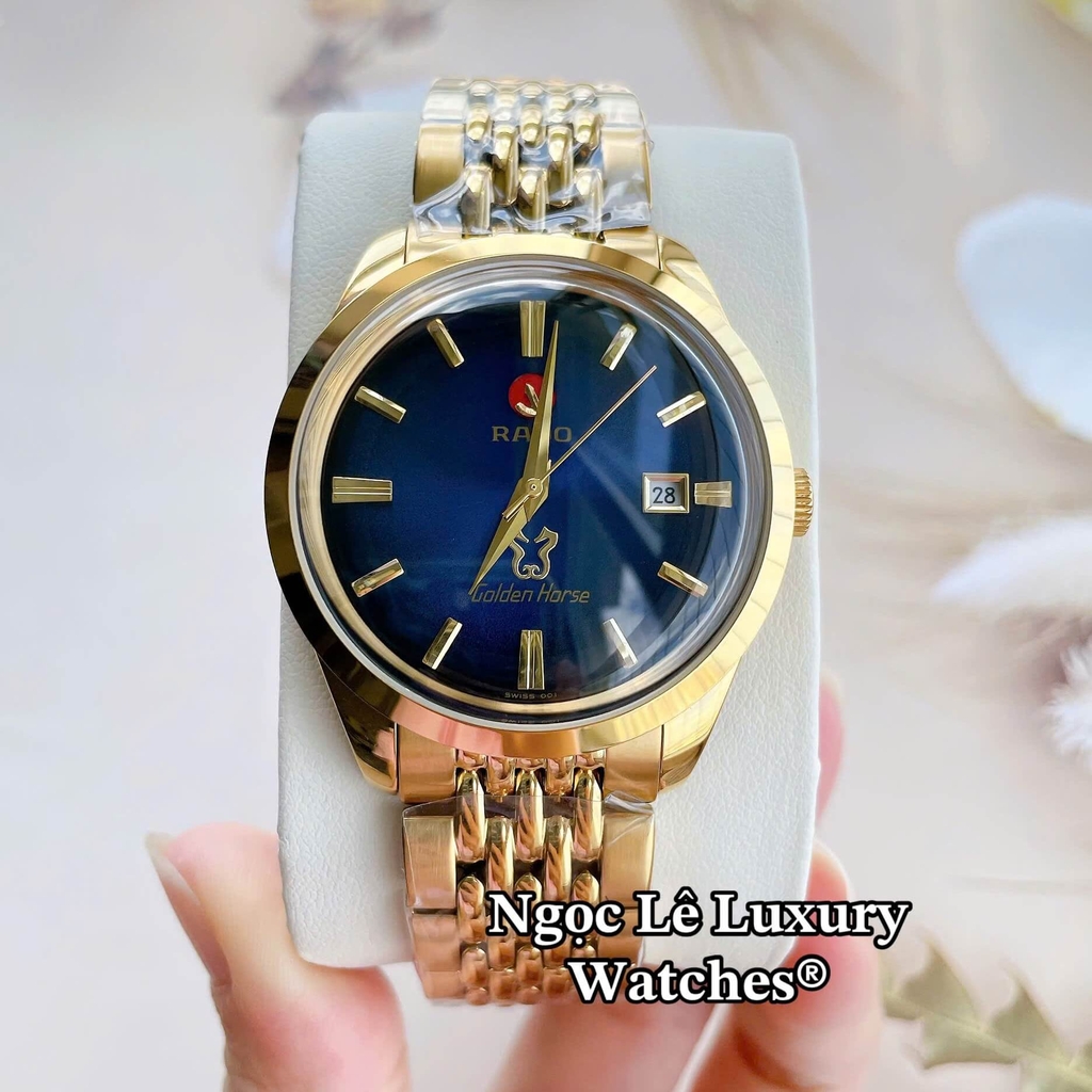 Đồng Hồ Nam Rado Golden Horse Automatic Cao Cấp Dây Vàng Mặt Ombre Xanh Dương Size 40mm – Sapphire