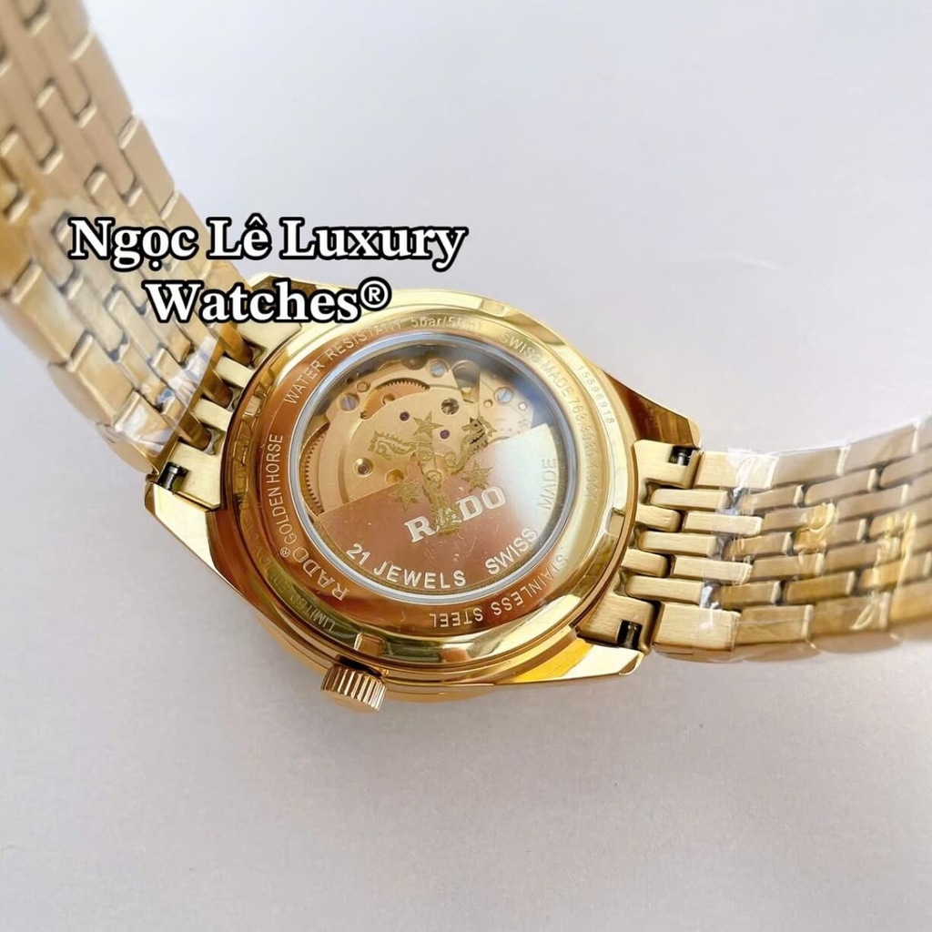 Đồng Hồ Nam Rado Golden Horse Automatic Cao Cấp Dây Vàng Mặt Ombre Xanh Lá Size 40mm – Sapphire