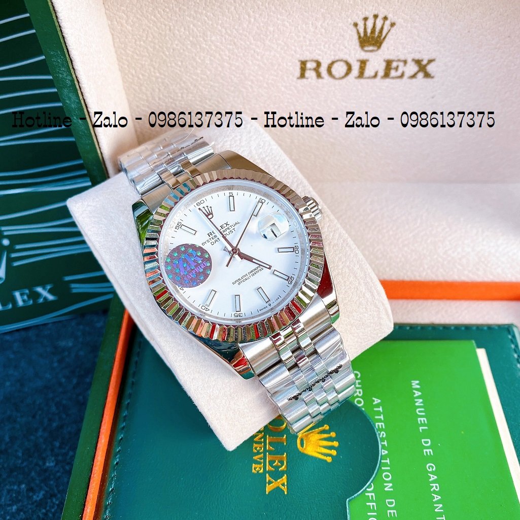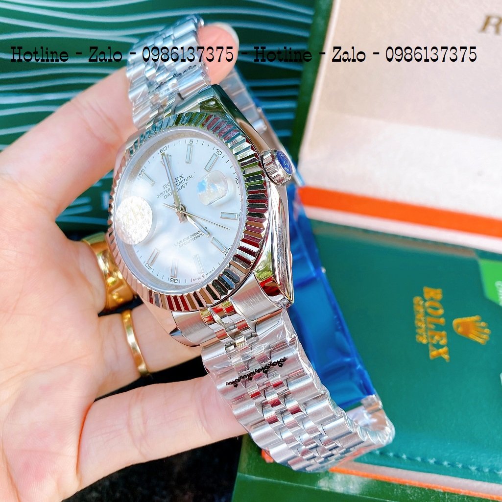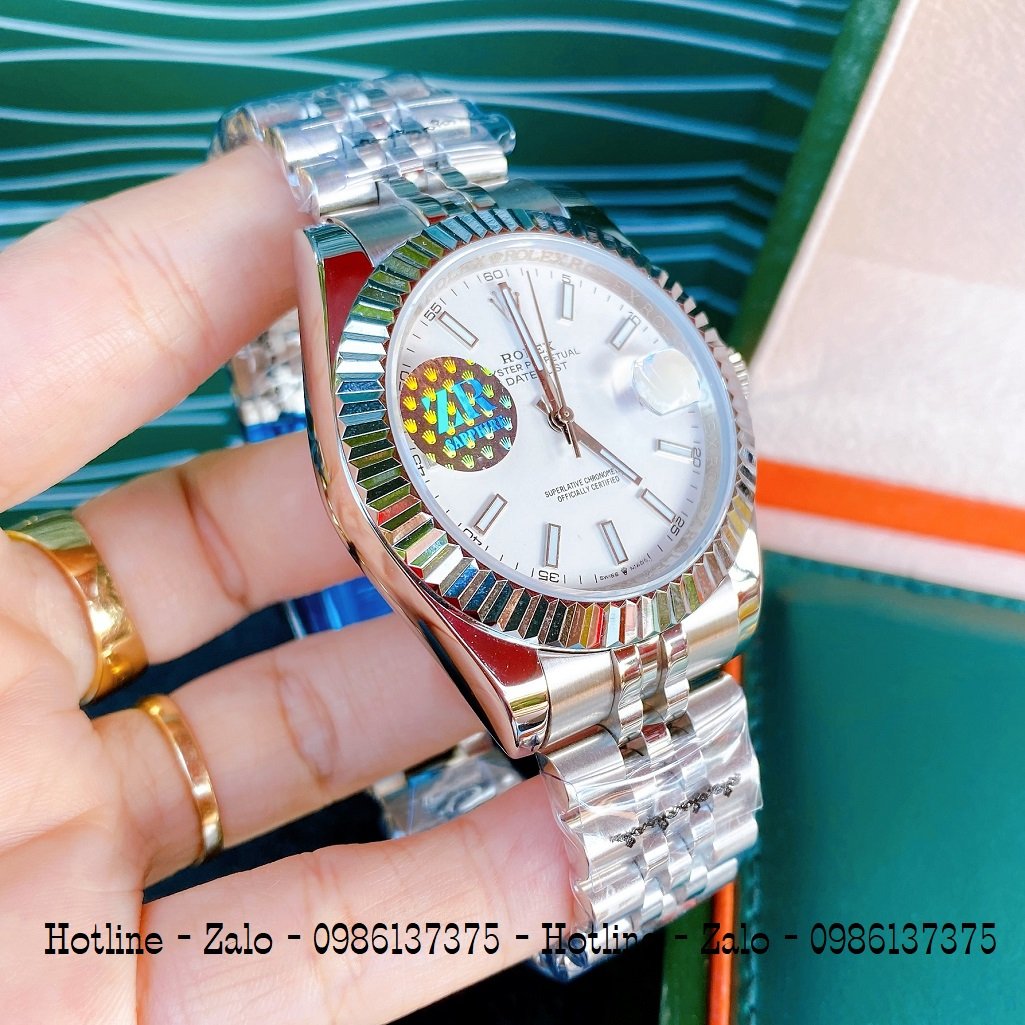 Đồng Hồ Nam Rolex Automatic 1 Lịch Viền Khía Bạc Trắng 41mm