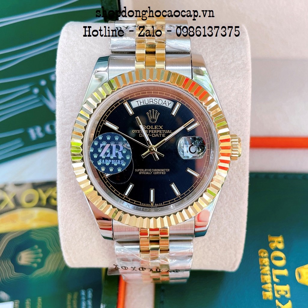 Đồng Hồ Nam Rolex Automatic 2 Lịch Viền Khía Demi Đen 41mm