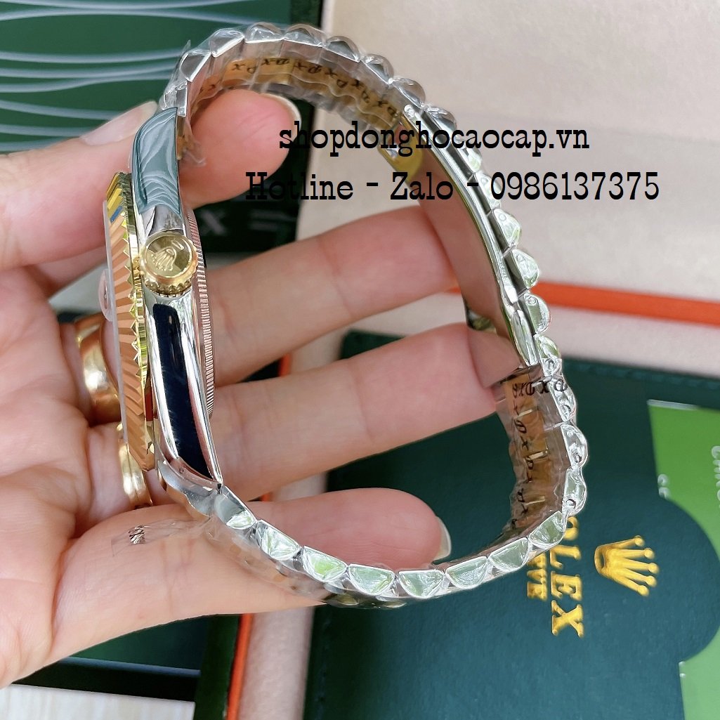 - Đồng Hồ Nam Rolex Automatic 2 Lịch Viền Khía Demi Green 41mm