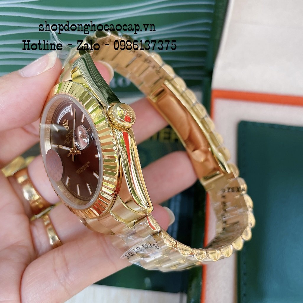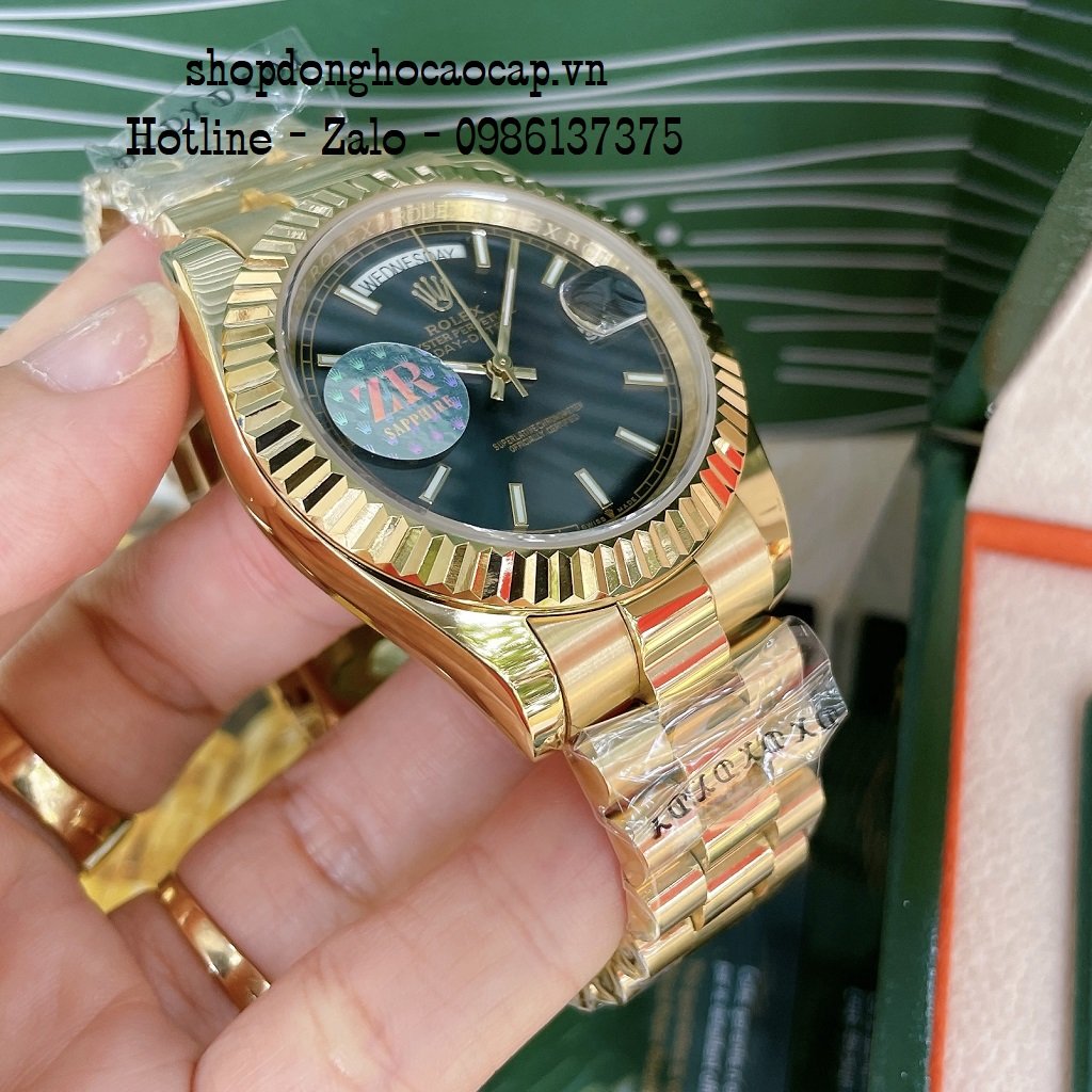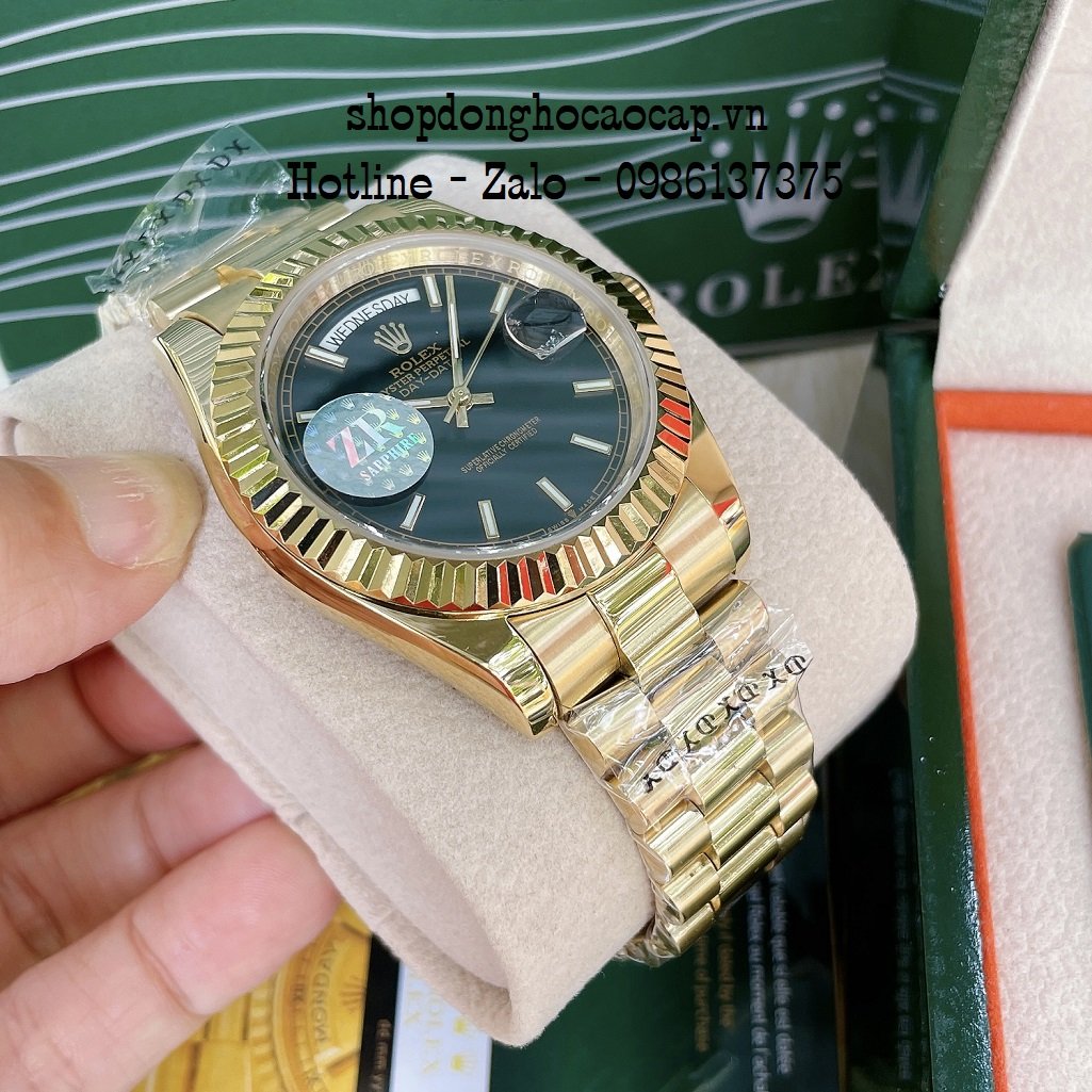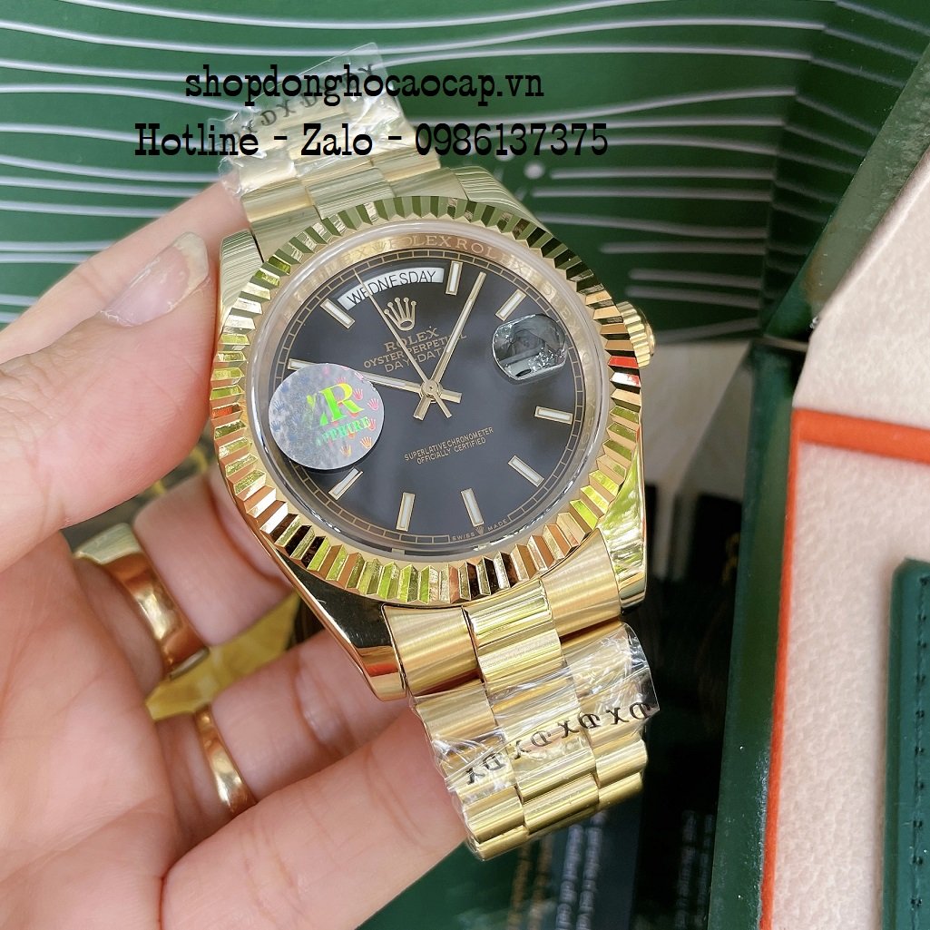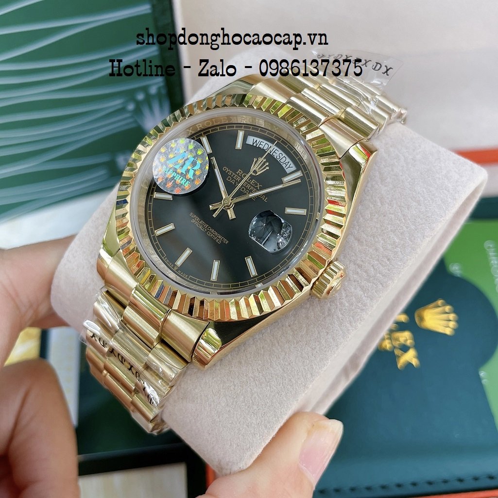 - Đồng Hồ Nam Rolex Automatic 2 Lịch Viền Khía Vàng Đen 41mm