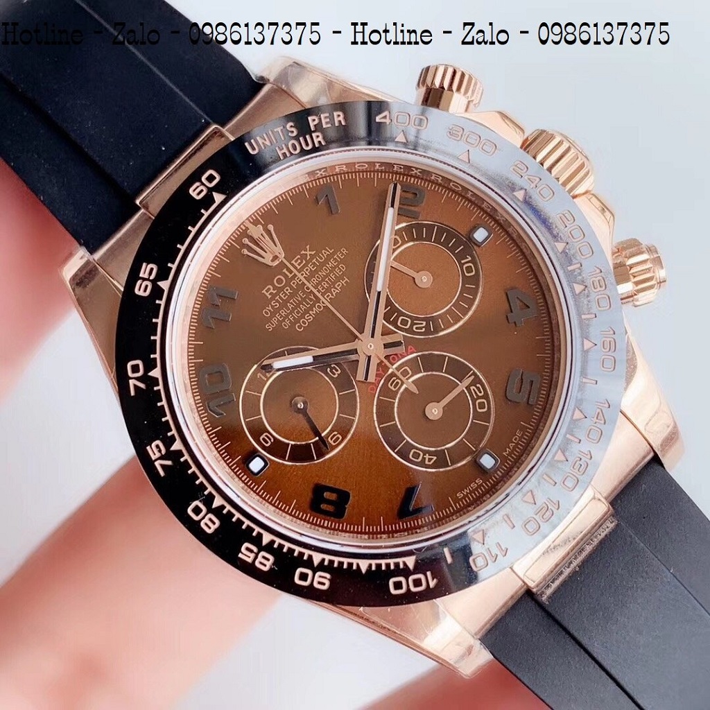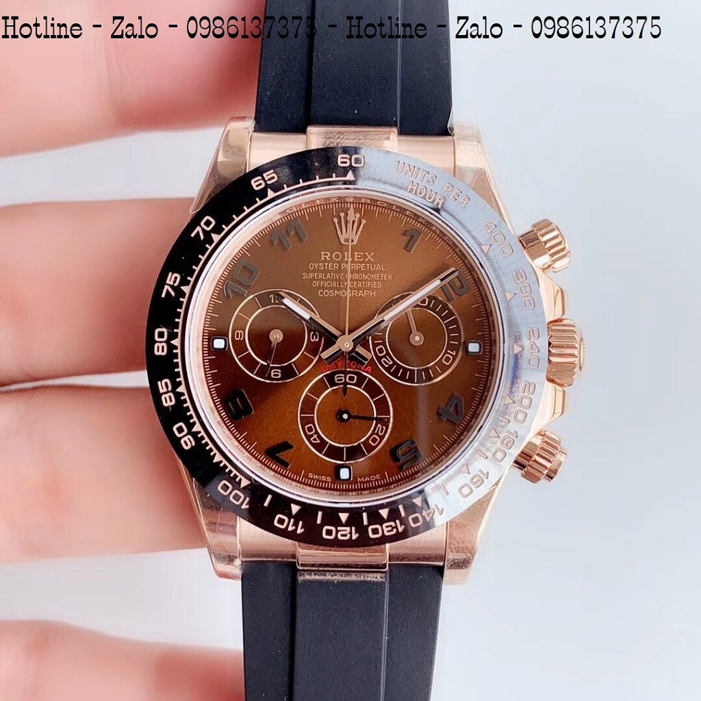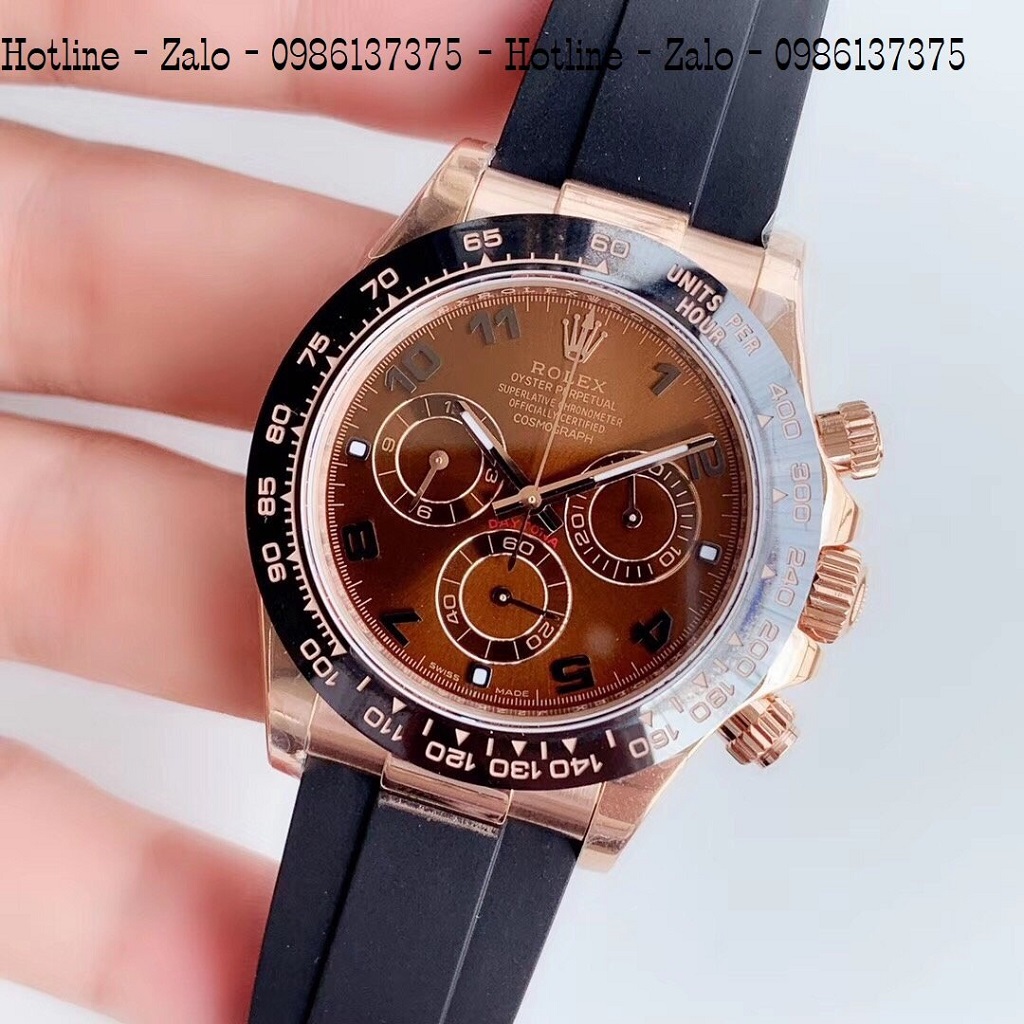 - Đồng Hồ Nam Rolex Automatic Dây Silicon Đen Mặt Nâu Rose Gold 42mm