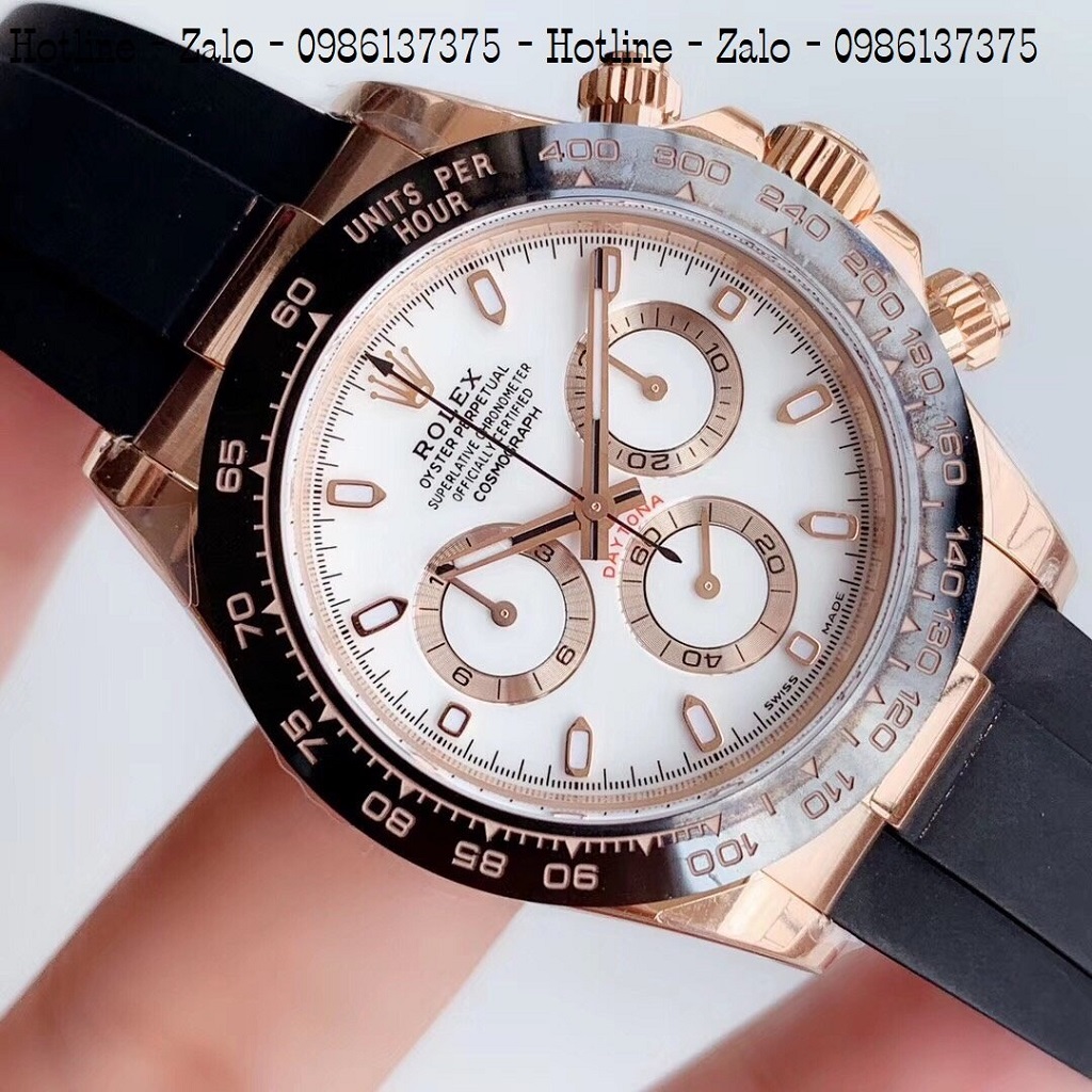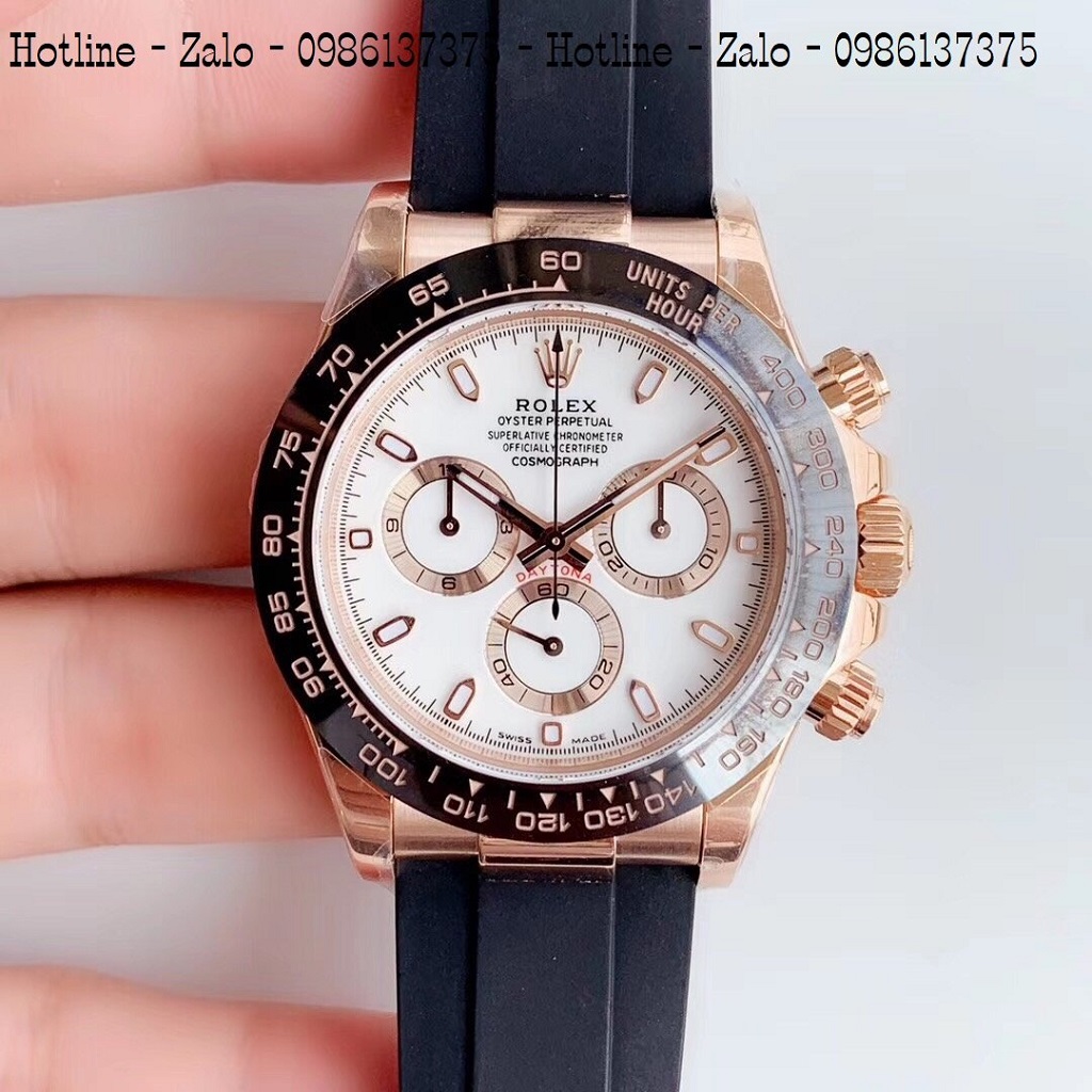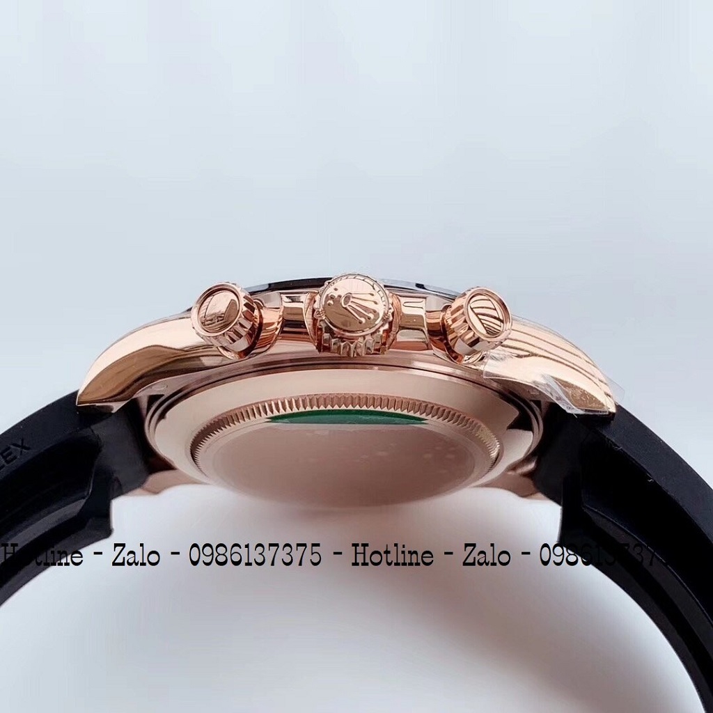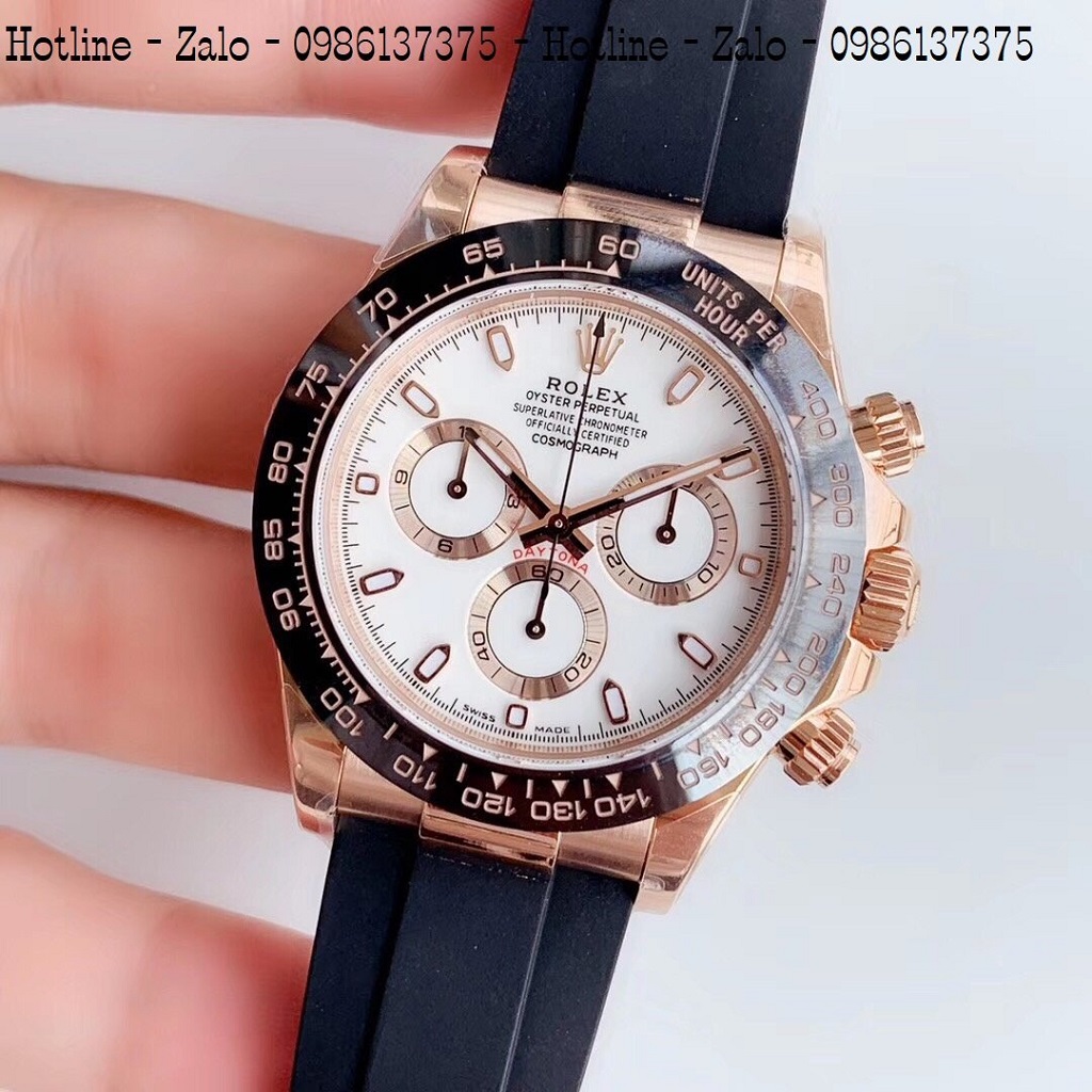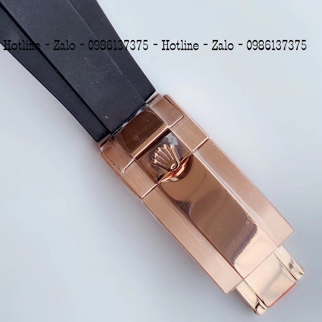 - Đồng Hồ Nam Rolex Automatic Dây Silicon Đen Mặt Trắng Rose Gold 42mm