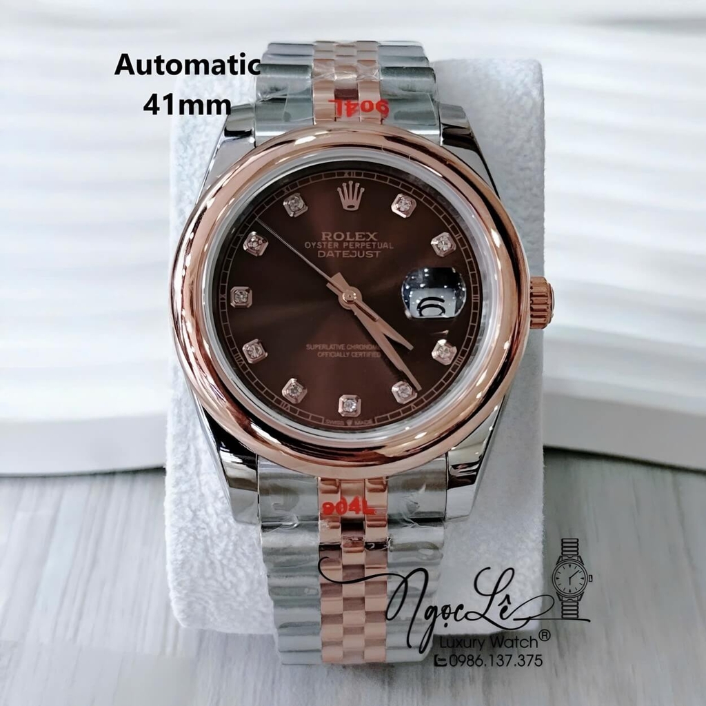 Đồng Hồ Nam Rolex Datejust Automatic Dây Kim Loại Demi Rose Mặt Nâu Size 41mm Dây Jubilee