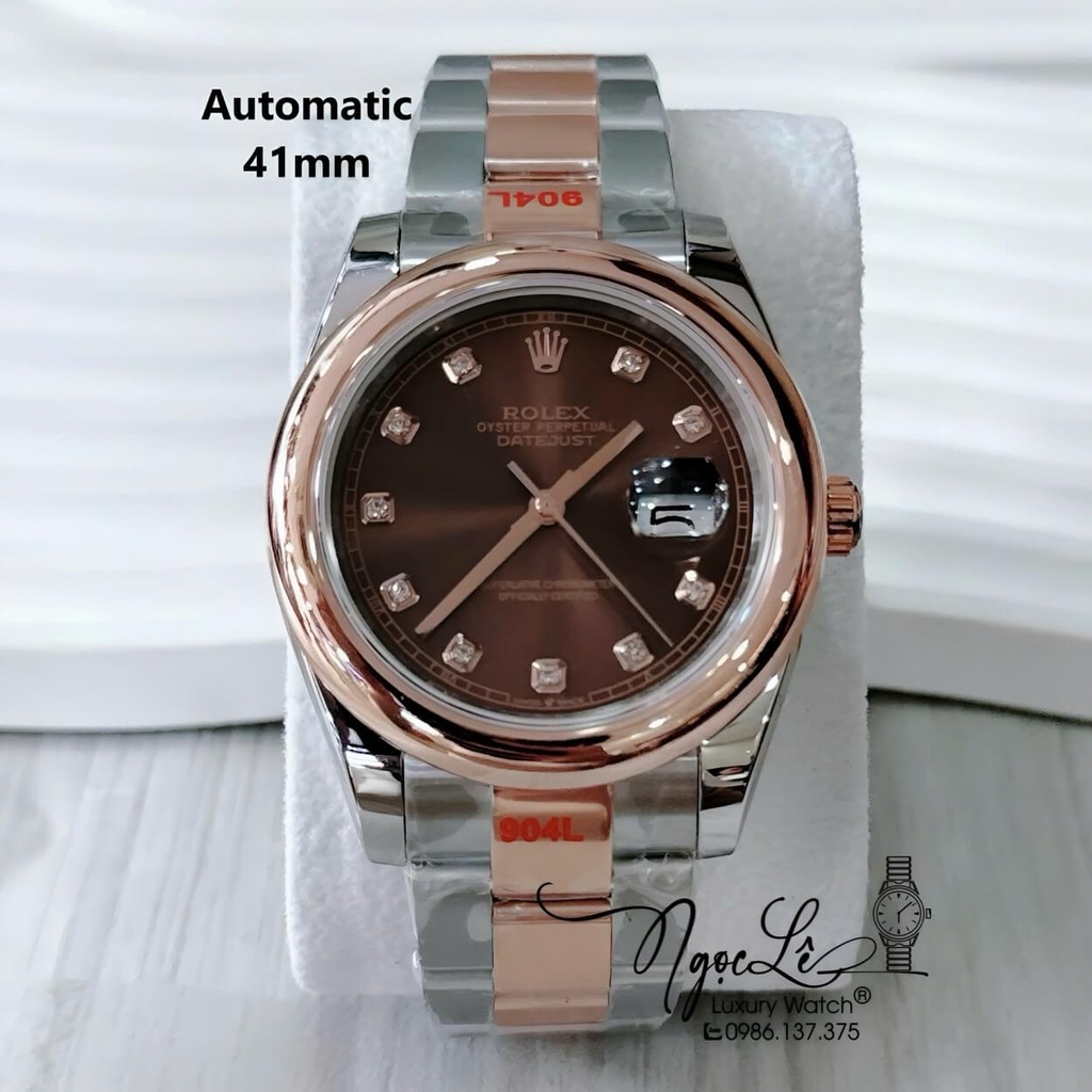 Đồng Hồ Nam Rolex Datejust Automatic Dây Kim Loại Demi Rose Mặt Nâu Size 41mm Dây Oyster