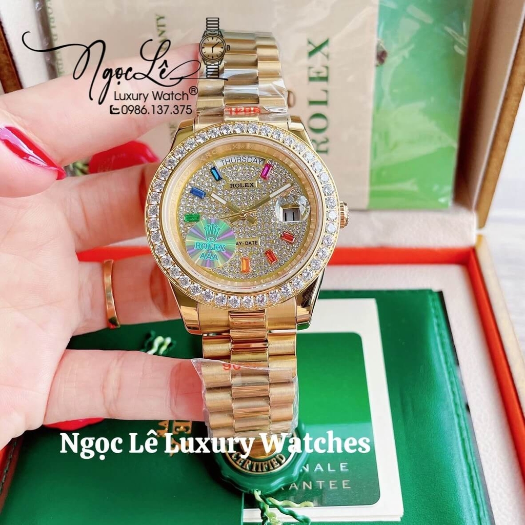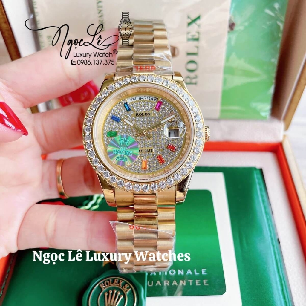 - Đồng hồ Rolex Day-Date tự động nam mặt niềng đá siêu cấp, mặt đồng hồ được đính full đá