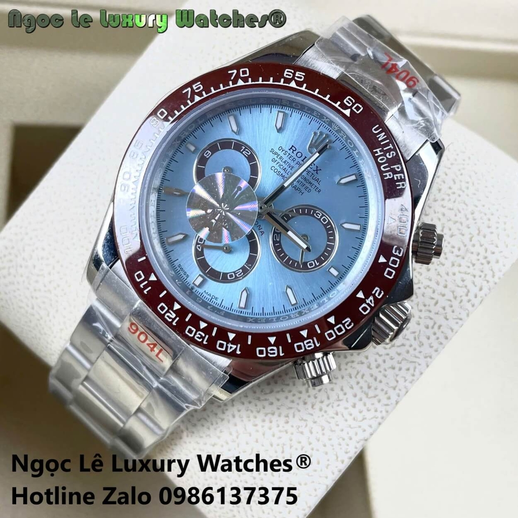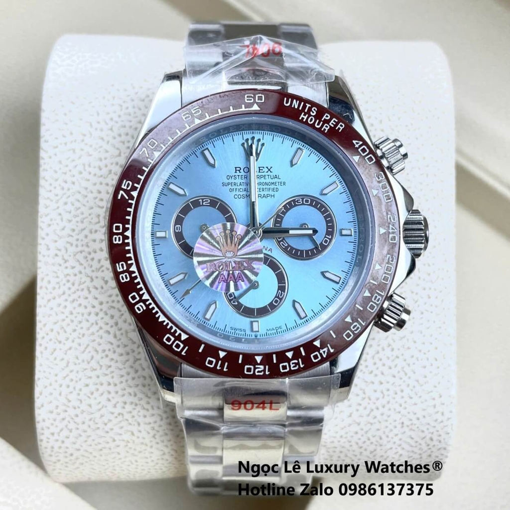 Hình ảnh Đồng Hồ Nam Rolex Daytona Automatic Dây Kim Loại Silver Mặt Xanh Viền Nâu Size 40mm