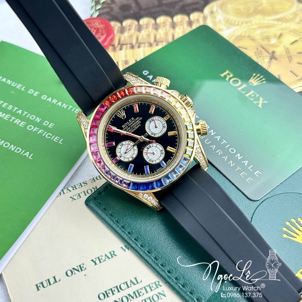 - Đồng hồ Rolex Daytona Rainbow Automatic dây silicon cho nam, mặt đính đá 6 kim