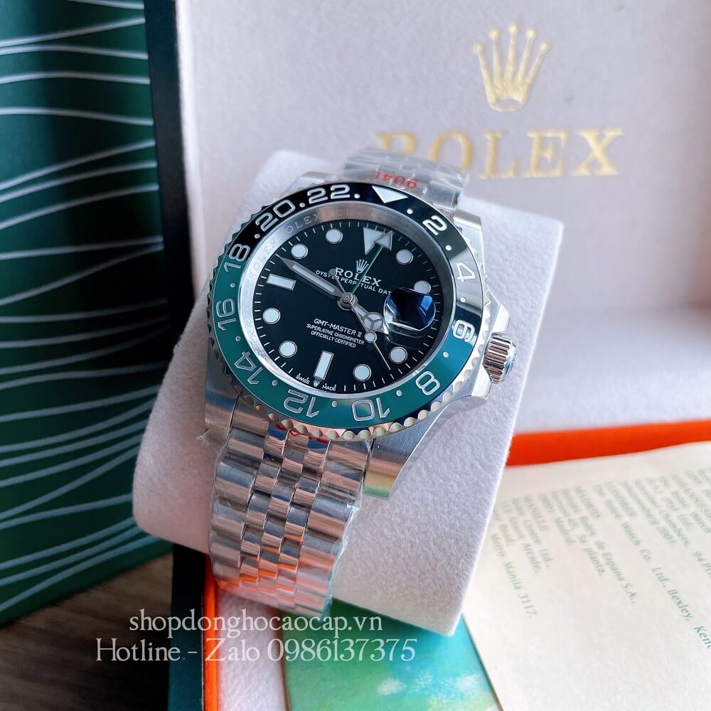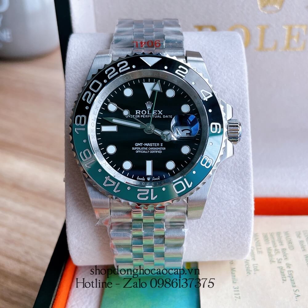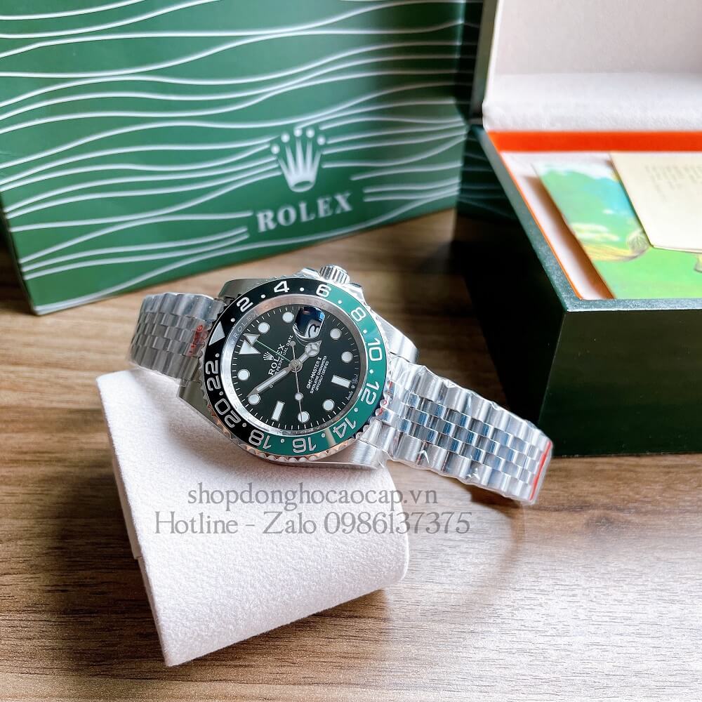 - Đồng Hồ Nam Rolex GMT Tự Động Viền Xoay Bạc Mặt Đen 41mm