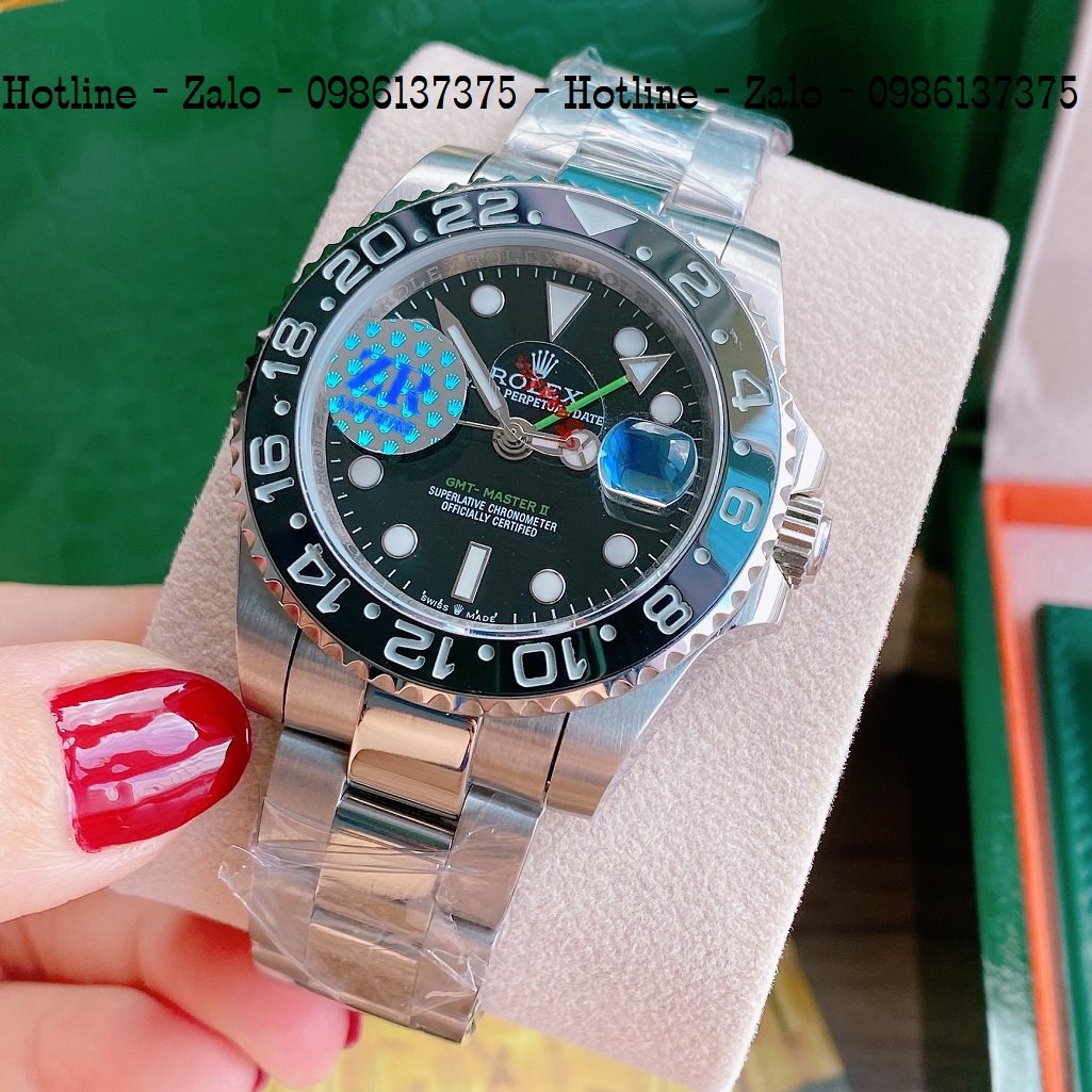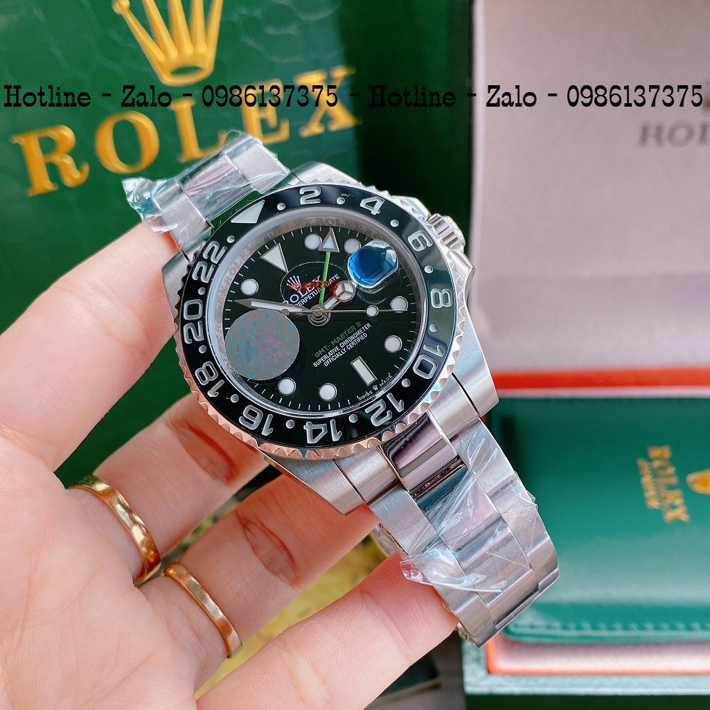 - Đồng Hồ Nam Rolex Tự Động Viền Xoay Dây Bạc Mặt Đen 41mm