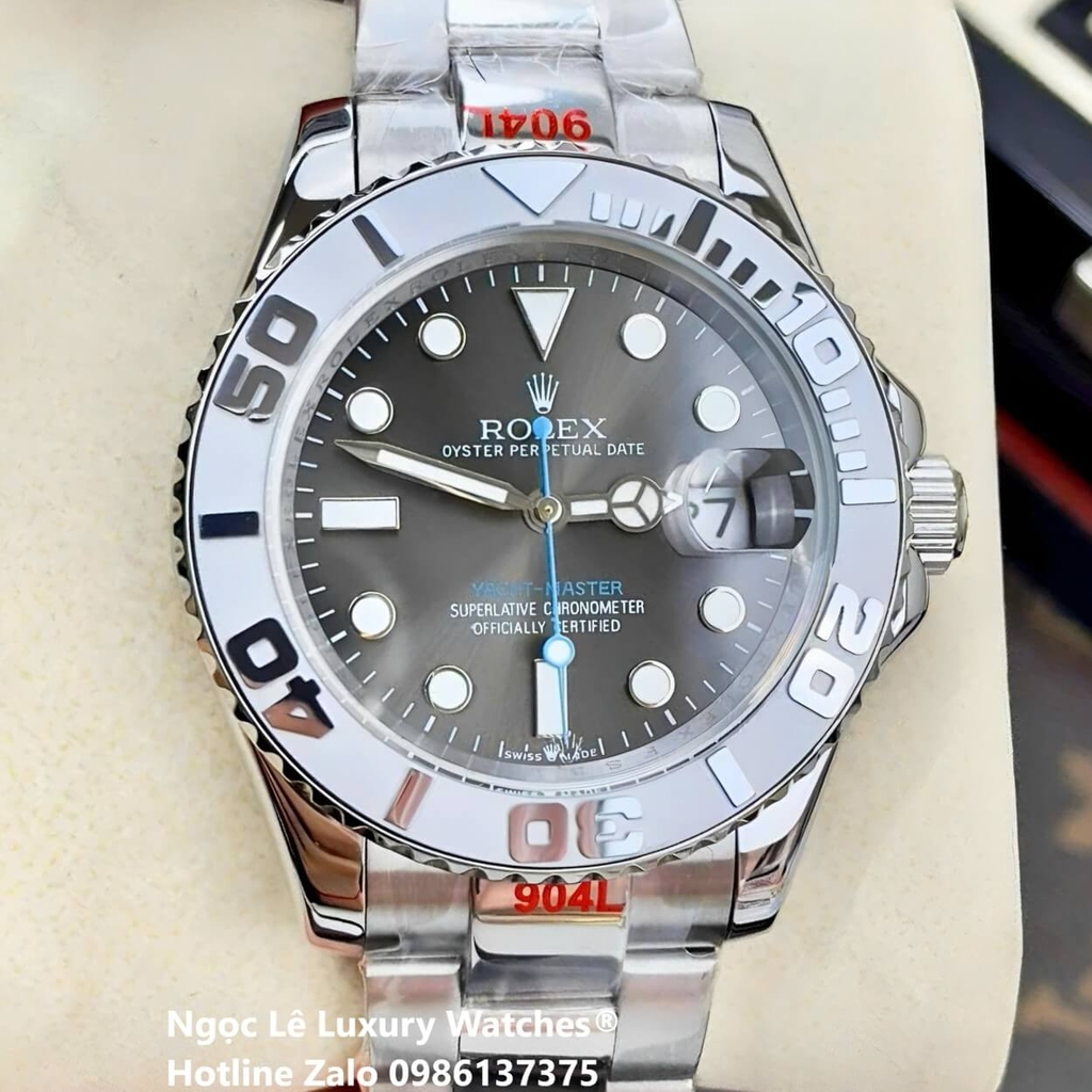 Đồng hồ Rolex Yacht Master Automatic dây kim loại silver mặt xám grey – hiện thân của sự sang trọng, mạnh mẽ và phong cách thể thao. Vòng benzen xoay tiện ích cùng mặt số xám thanh lịch, kim & vạch chỉ giờ phản quang dễ quan sát, mang đến sự tiện dụng và đẳng cấp cho quý ông hiện đại.
