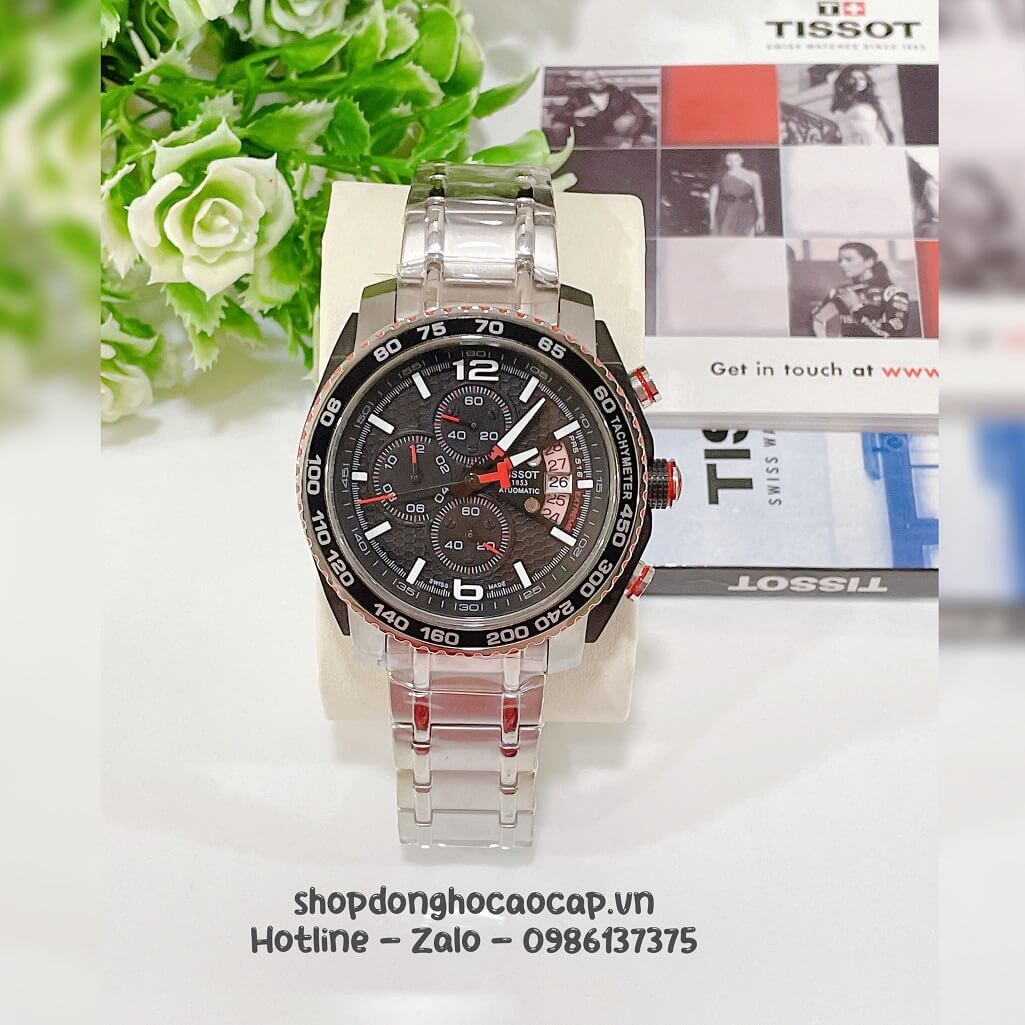 Đồng Hồ Nam Tissot Pin Dây Kim Loại Silver Kim Màu Đỏ 44mm
