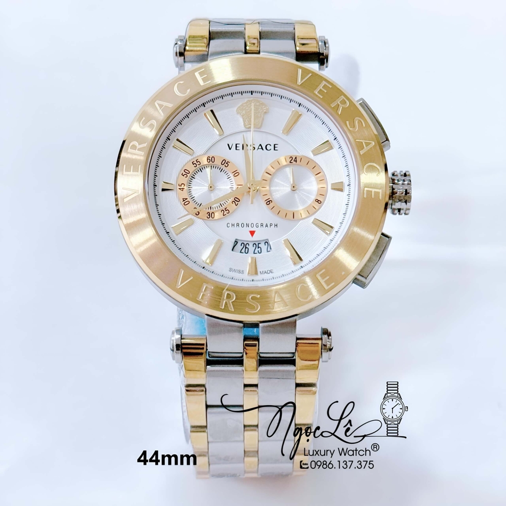 Đồng Hồ Nam Versace Aion Dây Kim Loại Demi Vàng Mặt Trắng Size 44mm Siêu Cấp