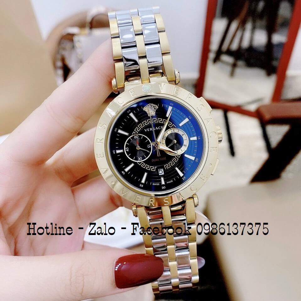 Đồng Hồ Nam Versace V-Race 5 Kim Demi Vàng Mặt Đen 45mm
