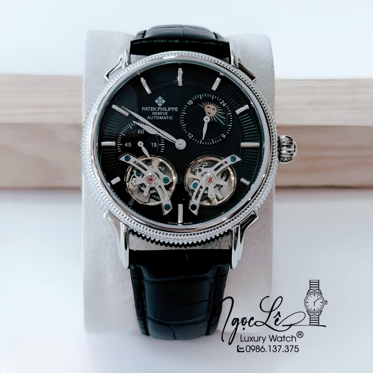 Đồng Hồ Nam Patek Philippe Tự Động Dây Da Đen Mặt Đen Vỏ Silver Size 42mm