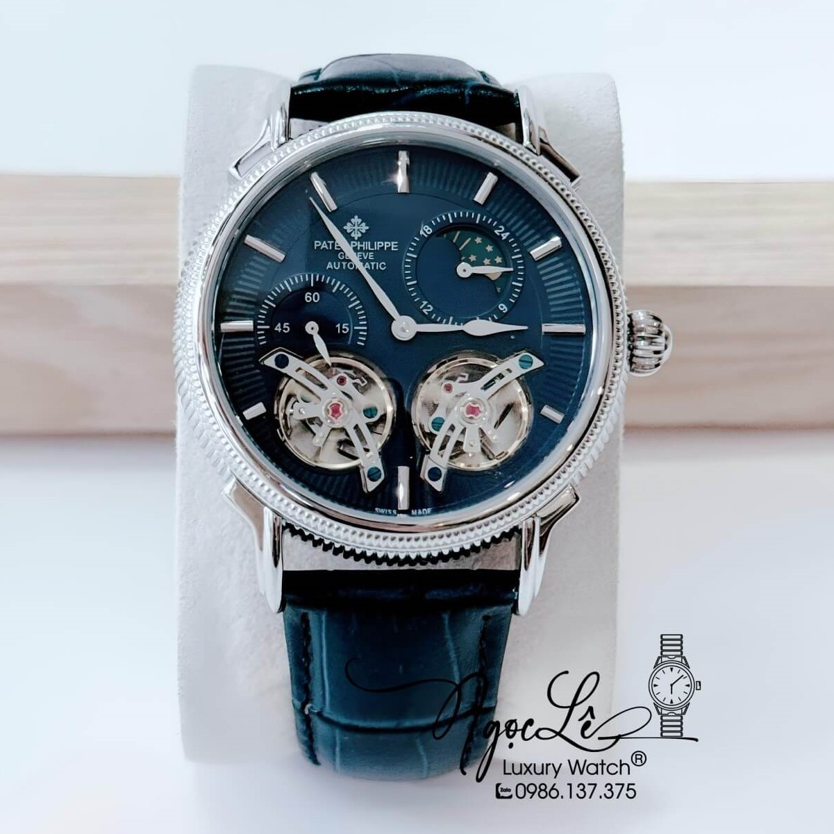 Đồng Hồ Nam Patek Philippe Tự Động Dây Da Xanh Mặt Xanh Vỏ Silver Size 42mm