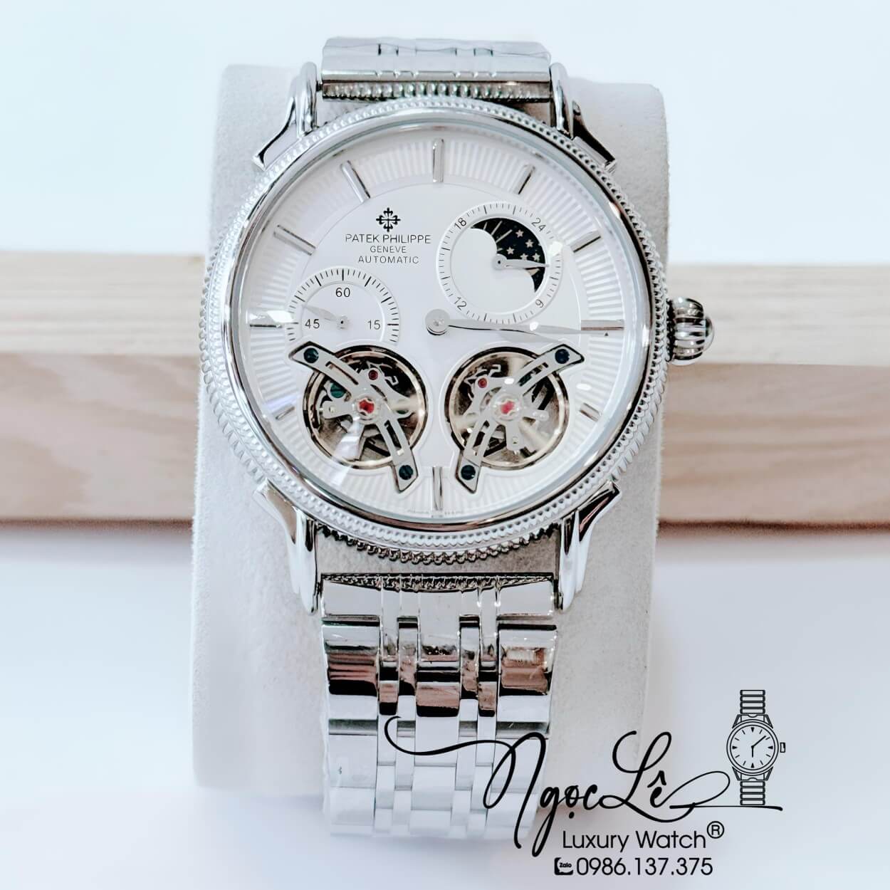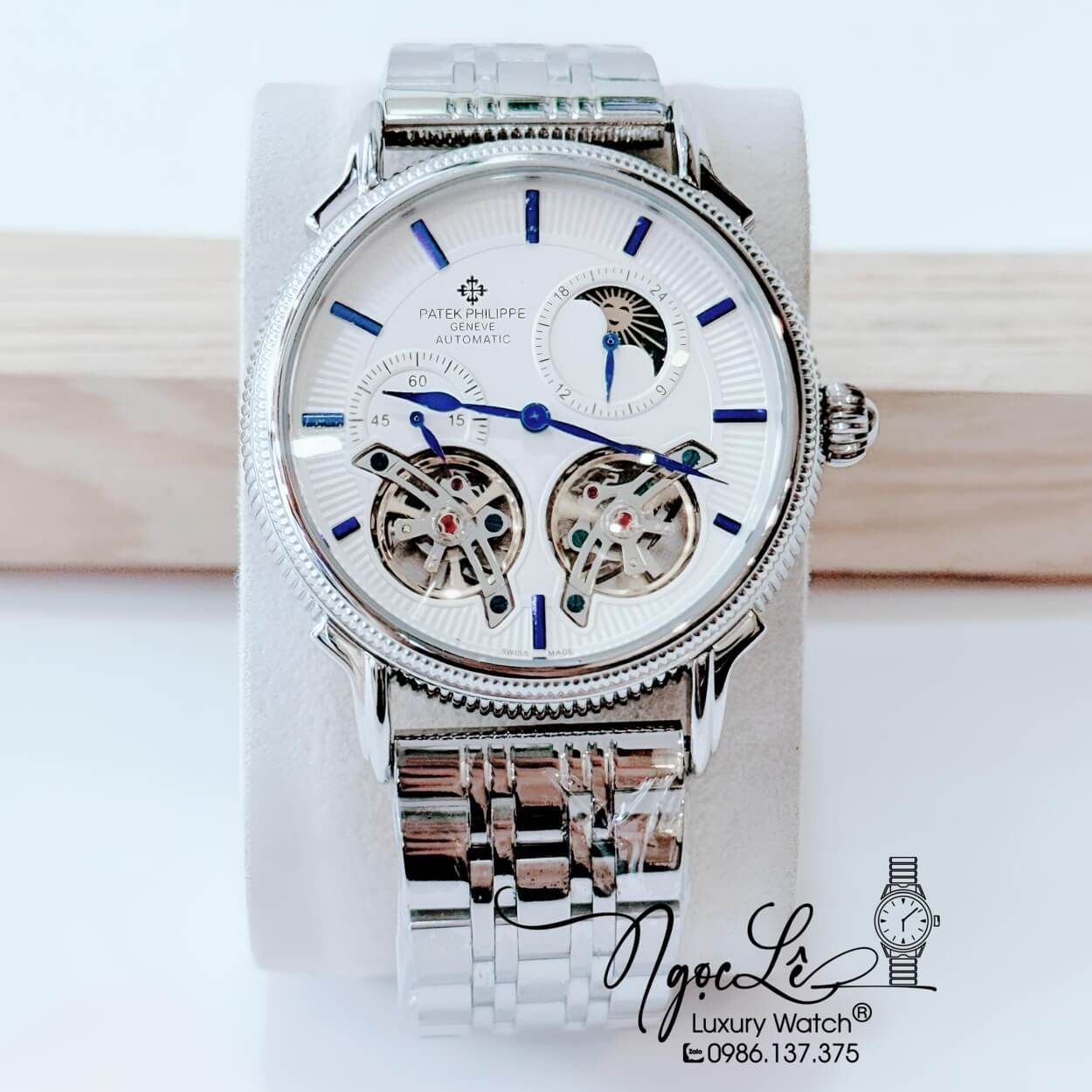 Đồng Hồ Nam Patek Philippe Tự Động Dây Kim Loại Bạc Mặt Trắng Size 42mm