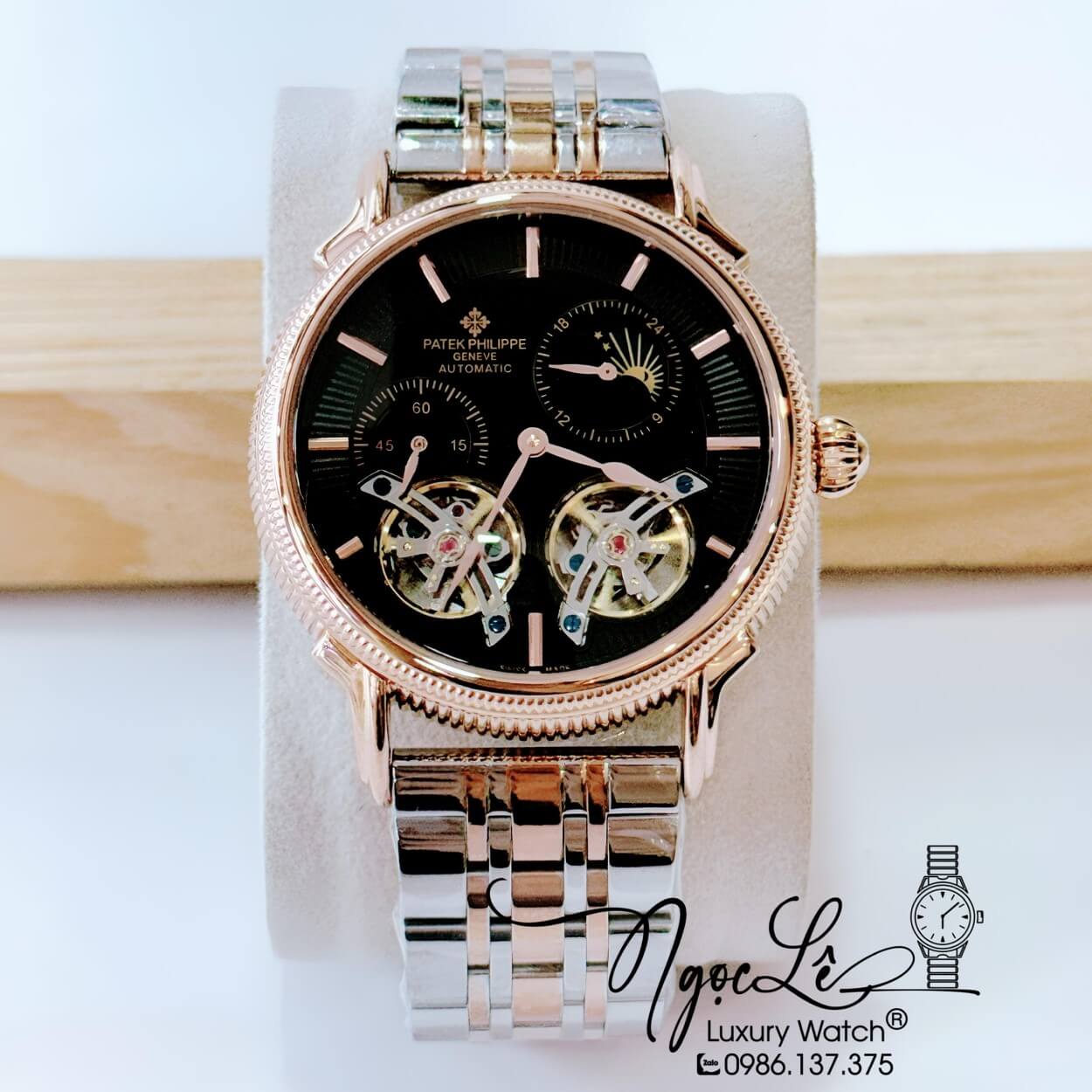 Đồng Hồ Nam Patek Philippe Tự Động Dây Kim Loại Demi Rose Mặt Đen Size 42mm