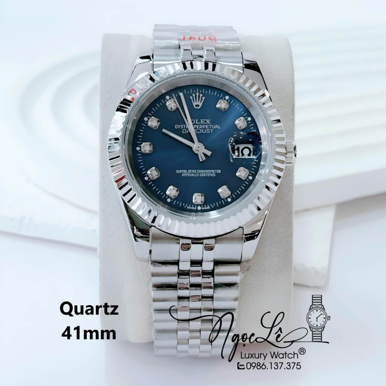 Đồng Hồ Nam Rolex Datejust Pin Dây Kim Loại Silver Mặt Xanh Dương Size 41mm