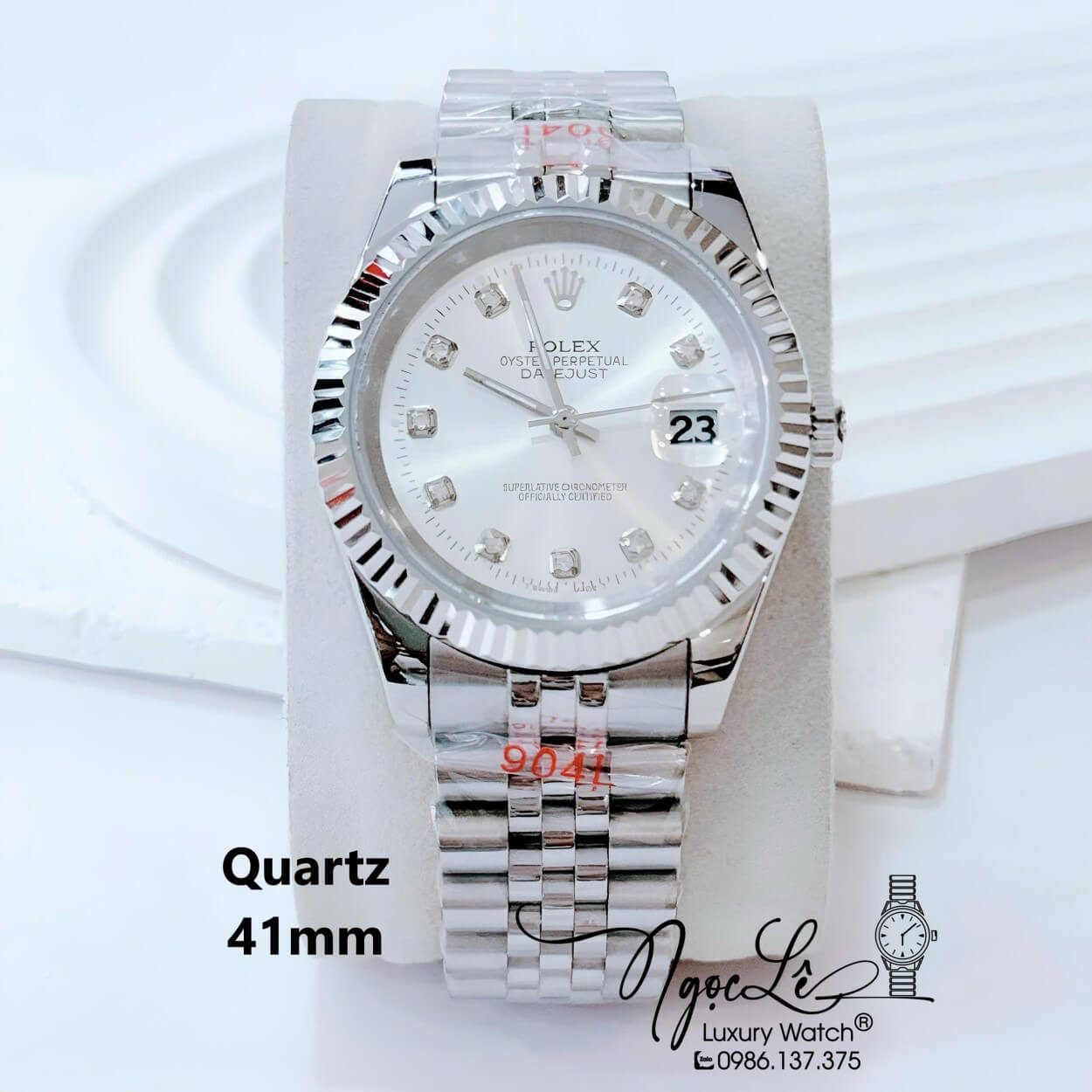 Đồng Hồ Nam Rolex Datejust Pin Dây Kim Loại Màu Bạc Đính Đá Size 41mm