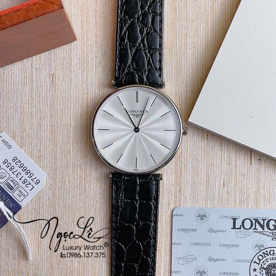 Đồng Hồ Longines Nam Quartz Dây Da Đen Mặt Trắng Vỏ Bạc Máy Thụy Sĩ Size 40mm