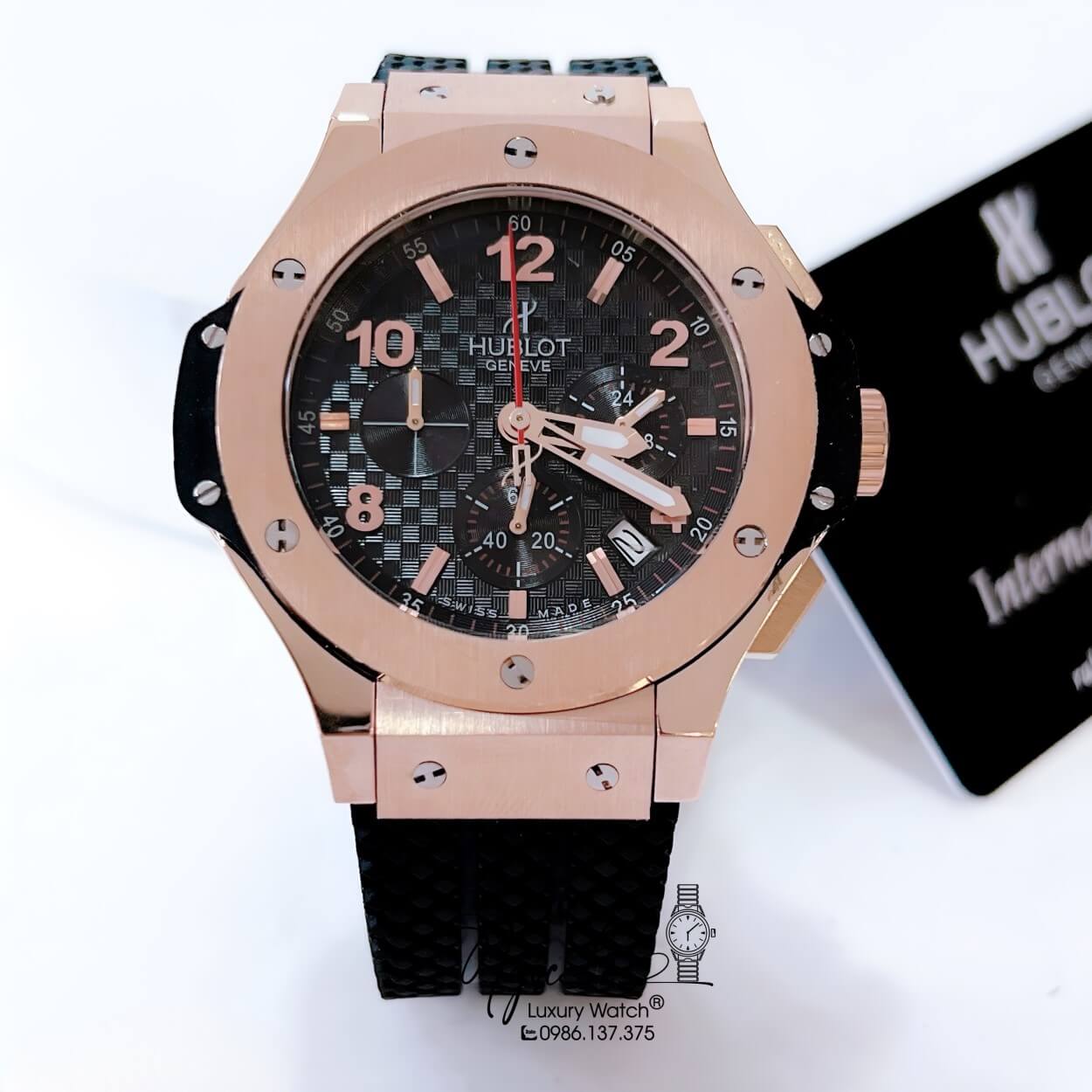 Đồng Hồ Hublot Big Bang Nam Máy Pin Dây Silicon Đen Vỏ Rose Size 42mm