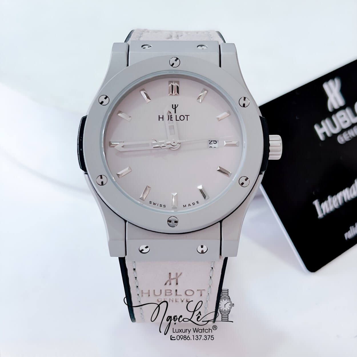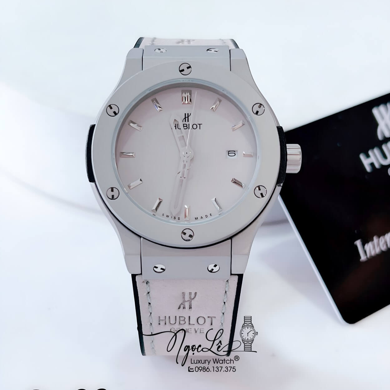 Đồng Hồ Hublot Classic Fusion Nam Máy Pin Dây Silicon Đen Mặt Trắng Vỏ Thép Mờ Size 38mm
