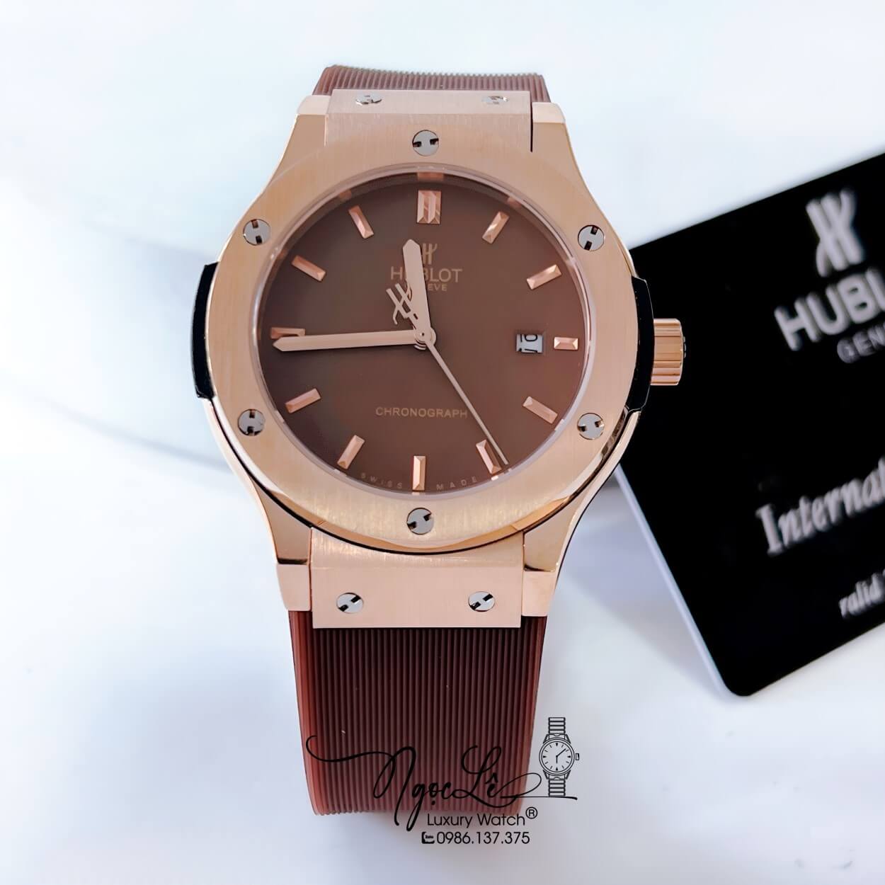 Đồng Hồ Hublot Classic Fusion Nam Máy Pin Dây Silicon Nâu Vỏ Rose Size 38mm