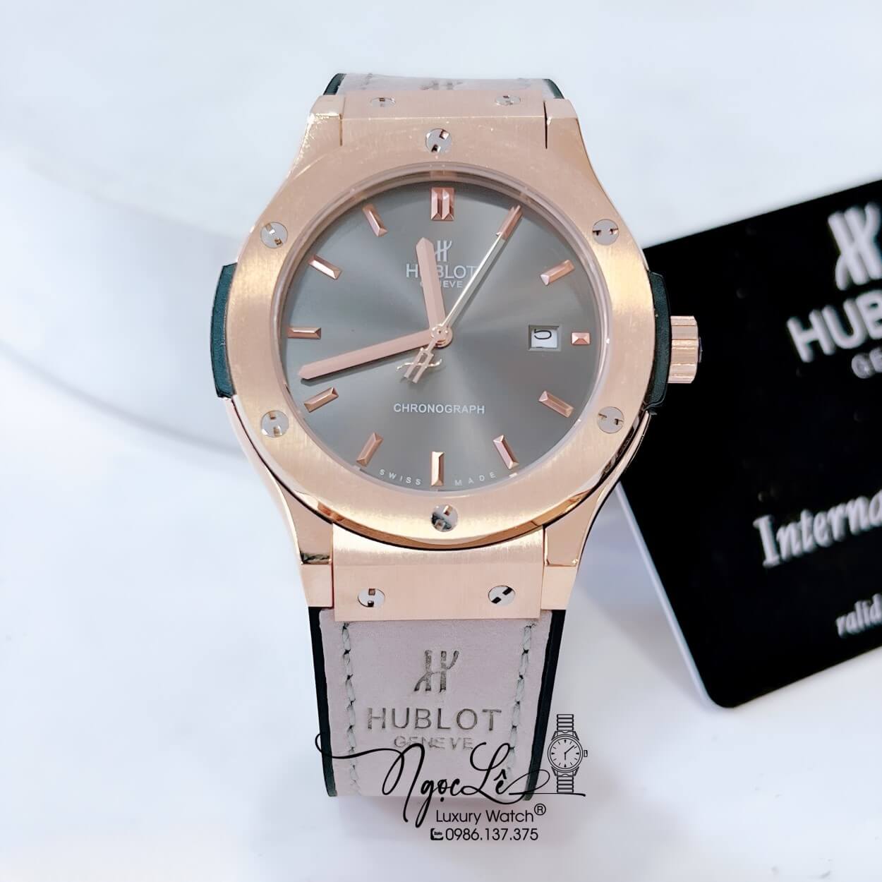 Đồng Hồ Hublot Classic Fusion Nam Máy Pin Dây Da Silicon Xám Vỏ Rose Size 38mm