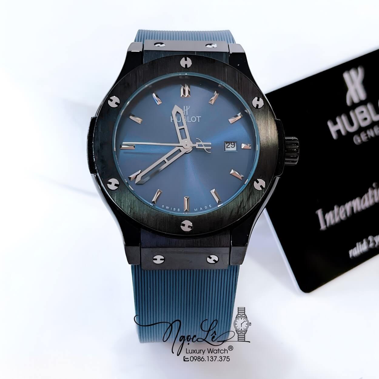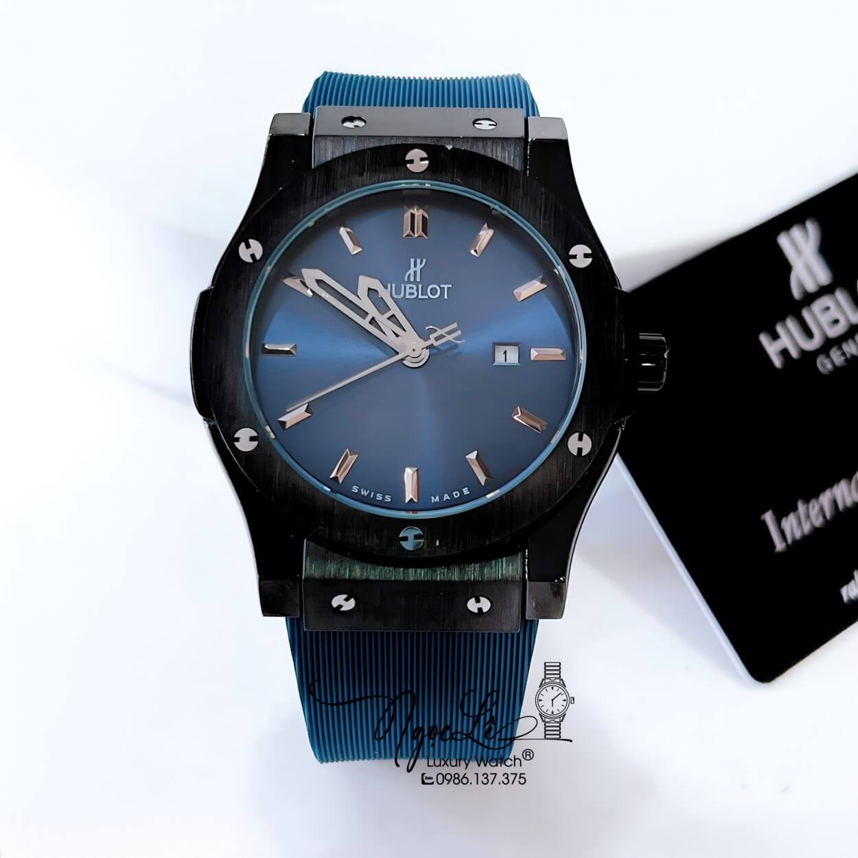 Đồng Hồ Hublot Classic Fusion Nam Máy Pin Dây Silicon Xanh Navy Vỏ Đen Size 38mm