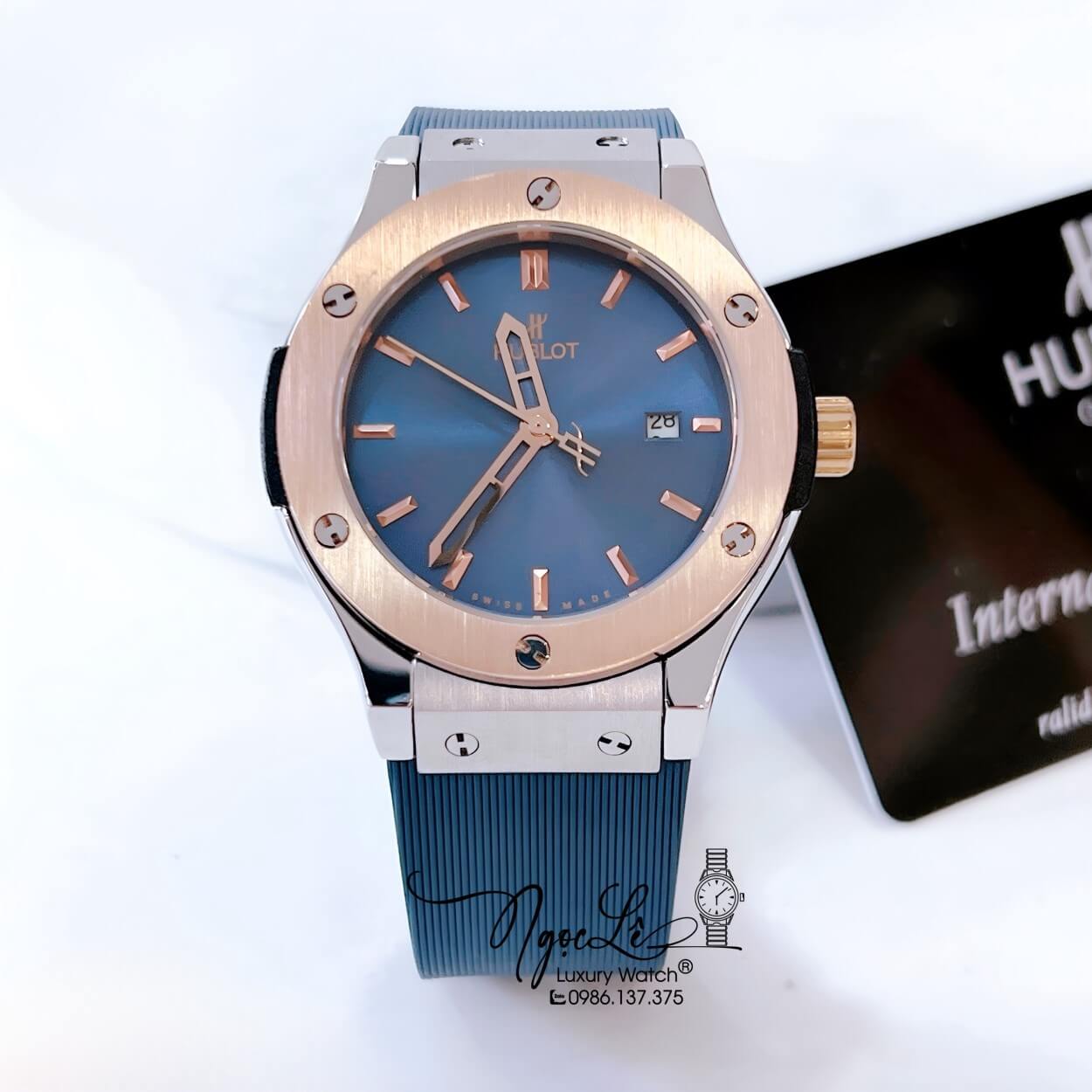 Đồng Hồ Hublot Classic Fusion Nam Máy Pin Dây Silicon Xanh Navy Vỏ Demi Rose Size 38mm