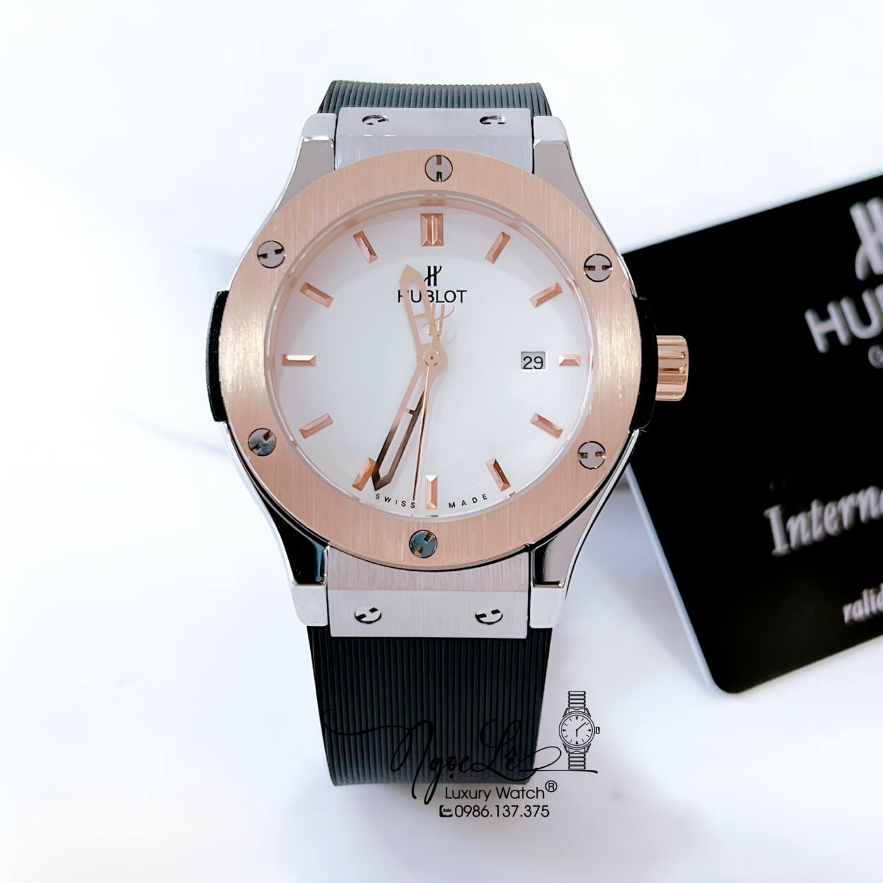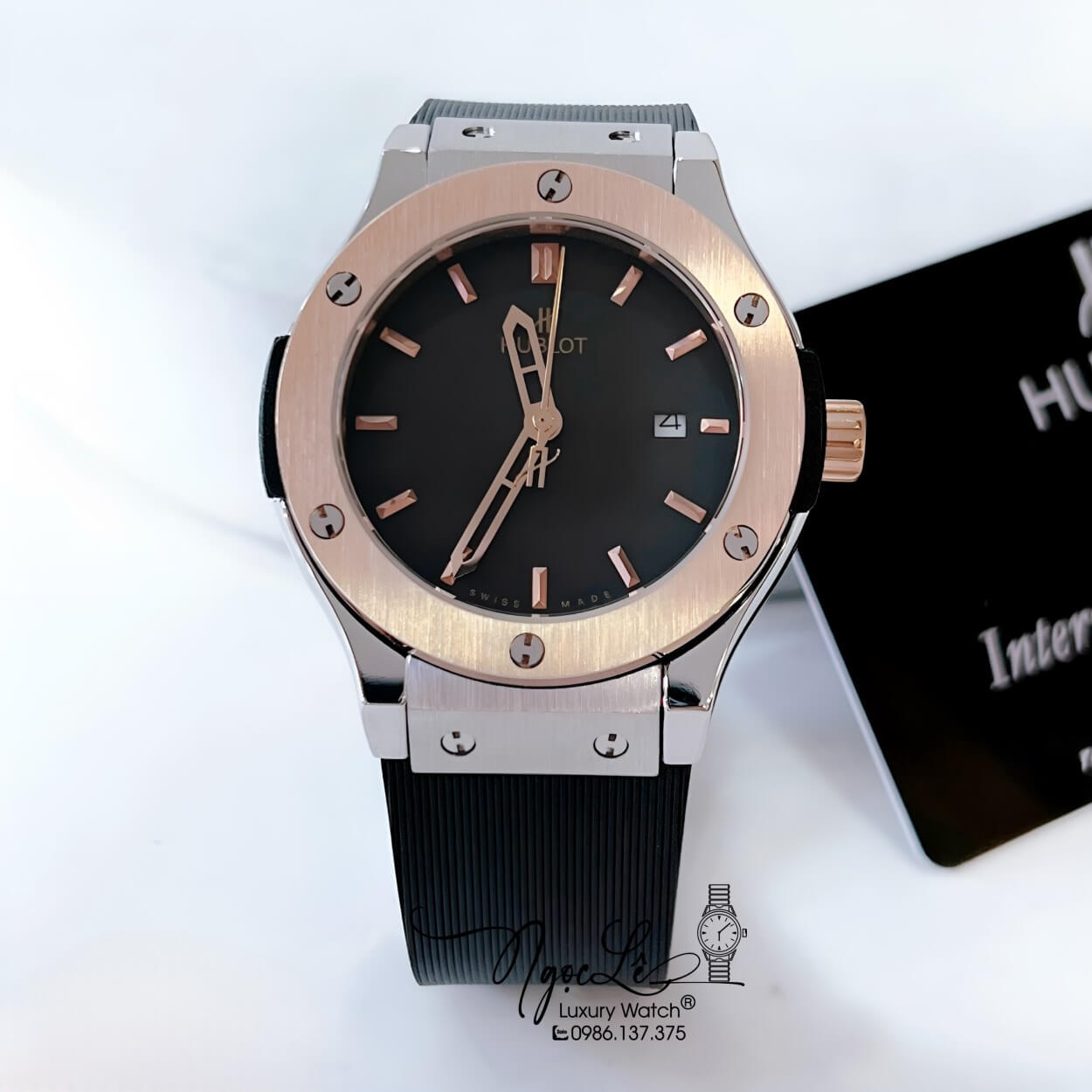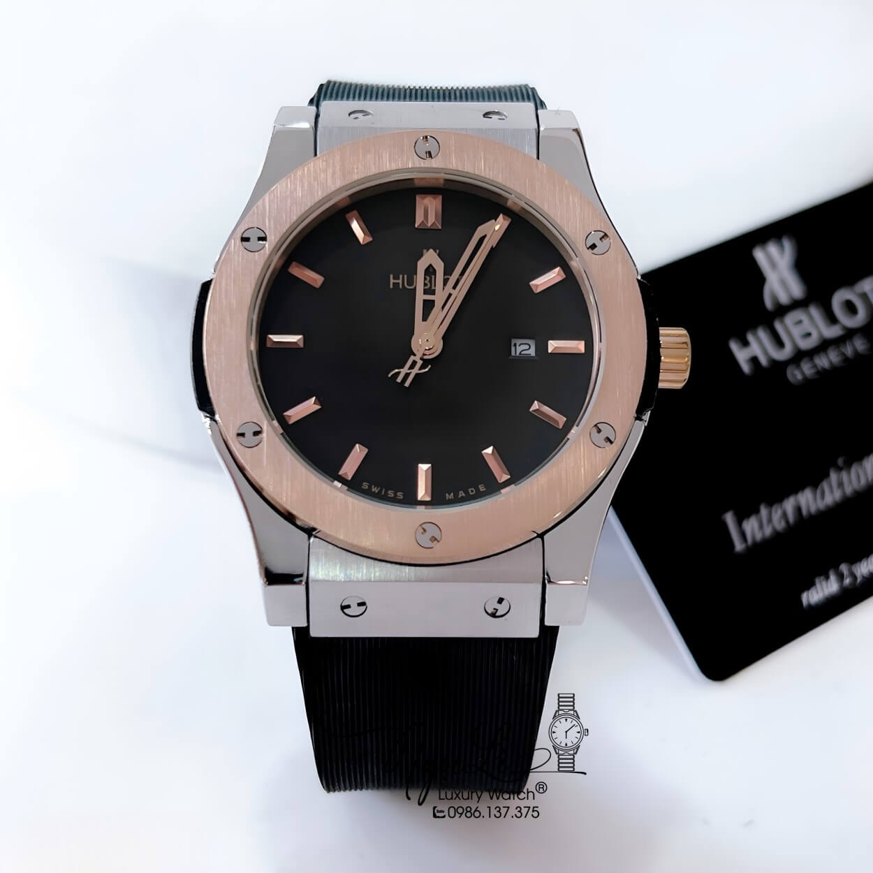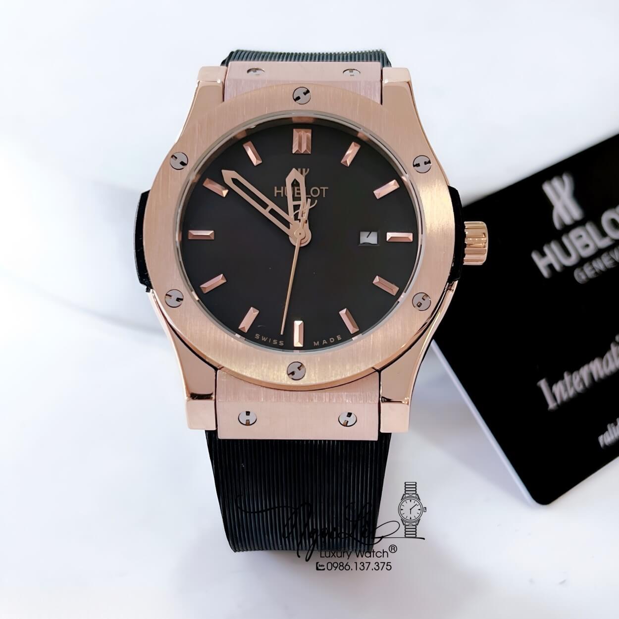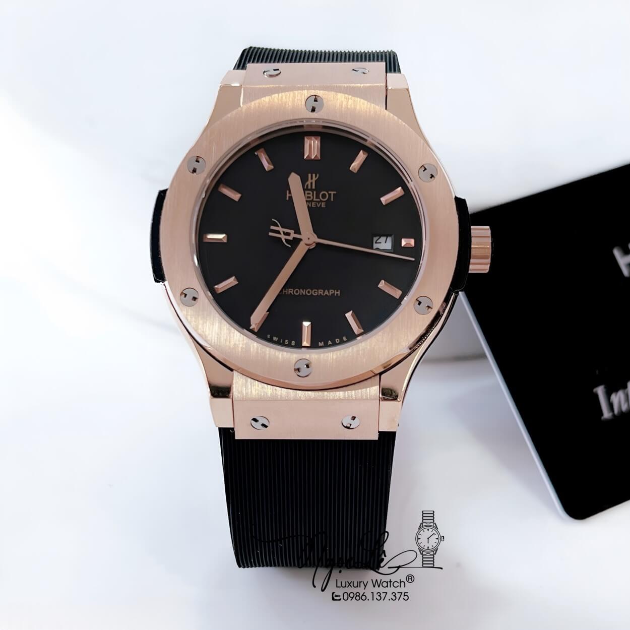 Đồng Hồ Hublot Classic Fusion Nam Máy Pin Dây Silicon Đen Vỏ Rose Size 42mm