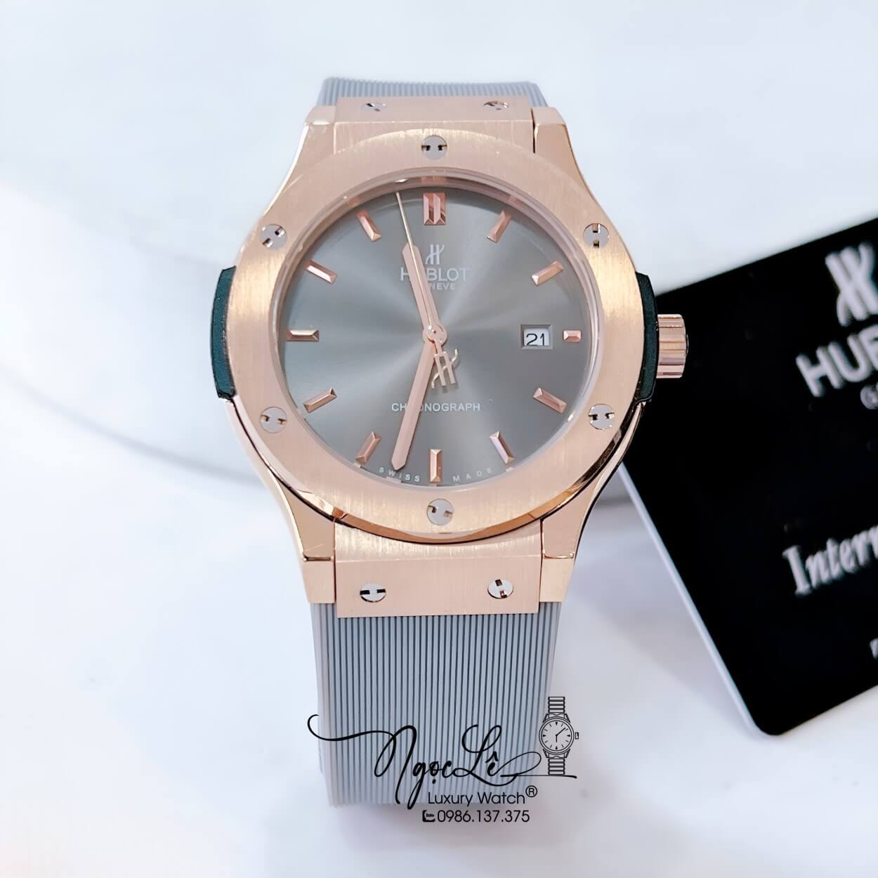 Đồng Hồ Hublot Classic Fusion Nam Máy Pin Dây Silicon Xám Vỏ Rose Size 38mm