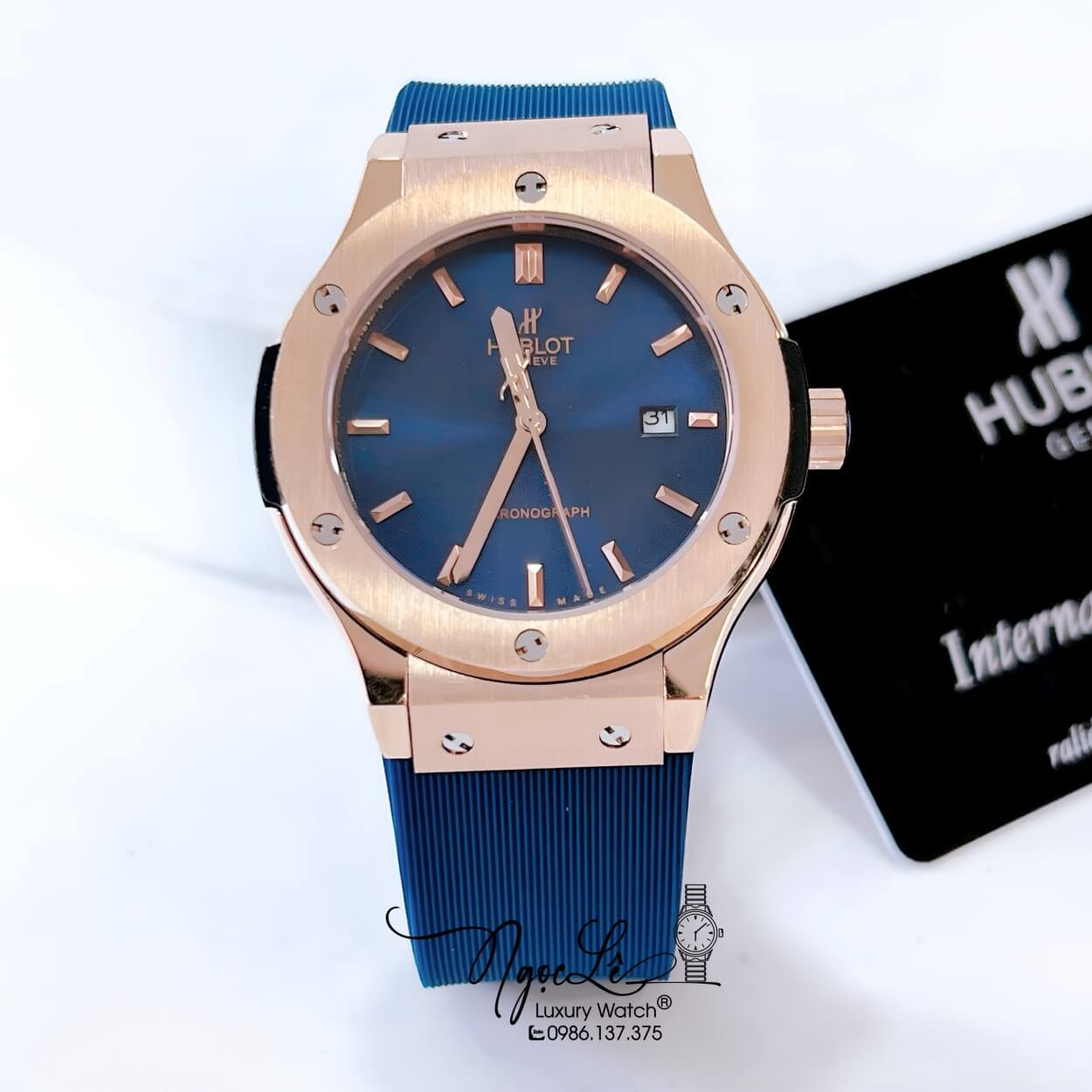 Đồng Hồ Hublot Classic Fusion Nam Máy Pin Dây Silicon Xanh Navy Vỏ Rose Size 38mm