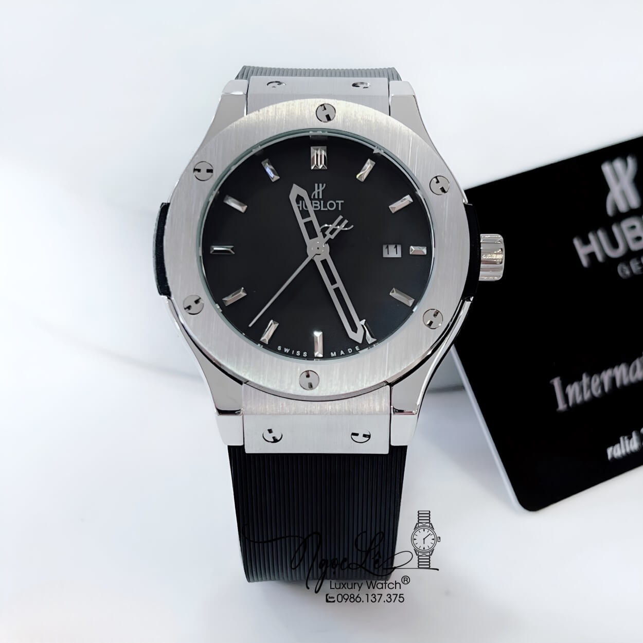 Đồng Hồ Hublot Classic Fusion Nam Máy Pin Dây Da Silicon Đen Vỏ Thép Mờ Size 42mm