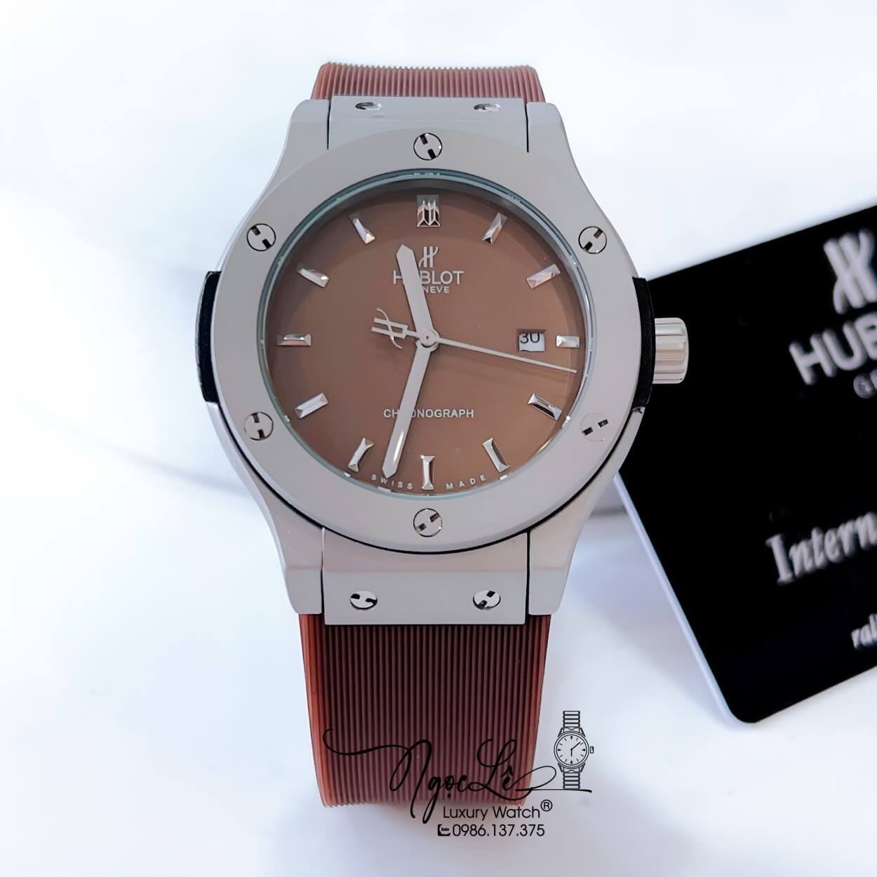 Đồng Hồ Hublot Classic Fusion Nam Máy Pin Dây Silicon Nâu Mặt Nâu Size 38mm