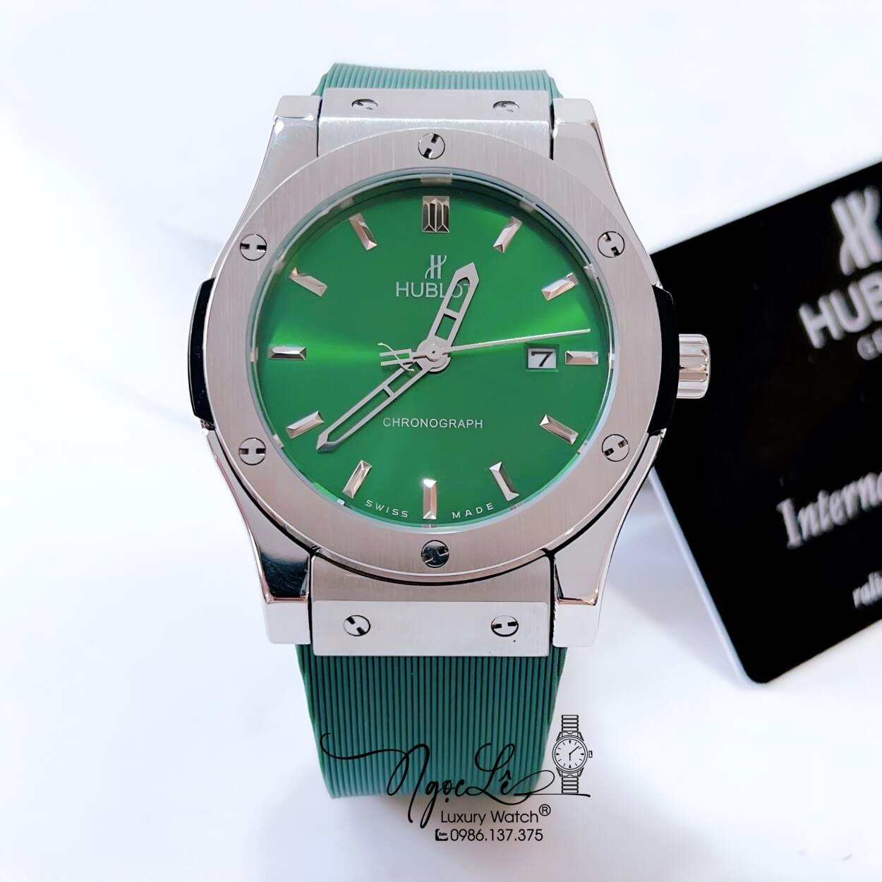 Đồng Hồ Hublot Classic Fusion Nam Máy Pin Dây Silicon Xanh Lá Vỏ Thép Silver 42mm