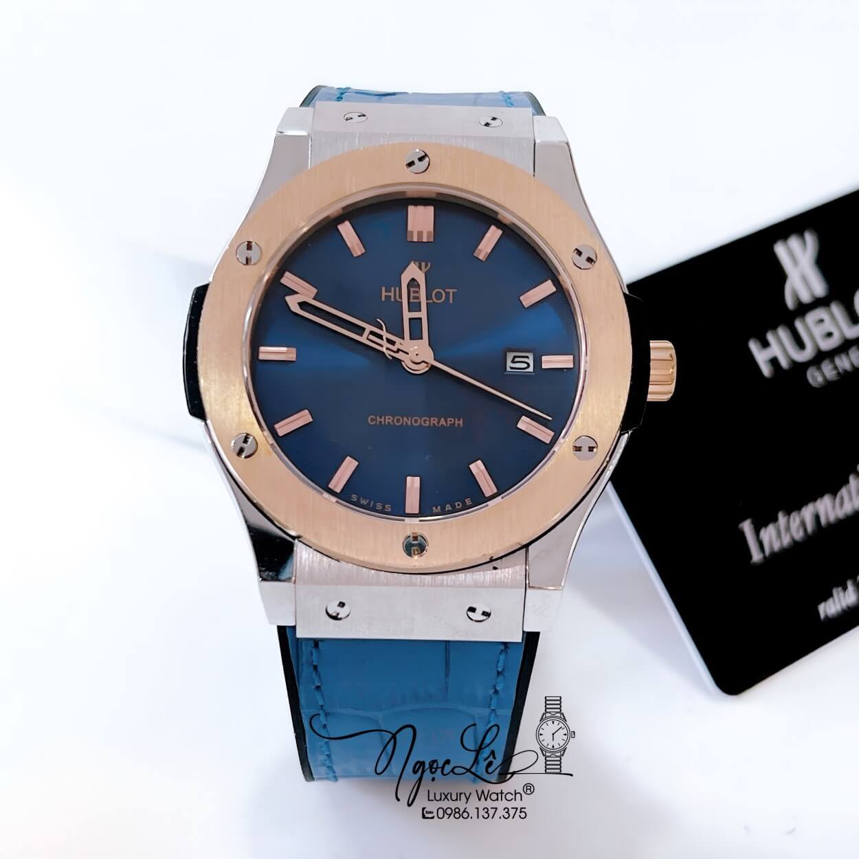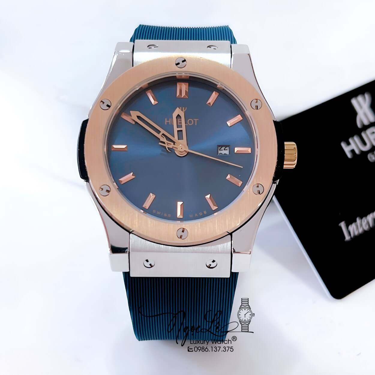 Đồng Hồ Hublot Classic Fusion Nam Máy Pin Dây Silicon Xanh Navy Vỏ Demi Rose Size 42mm