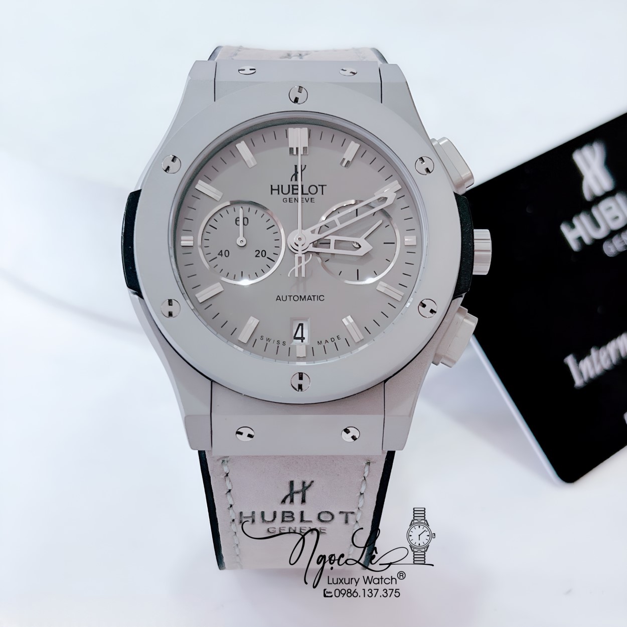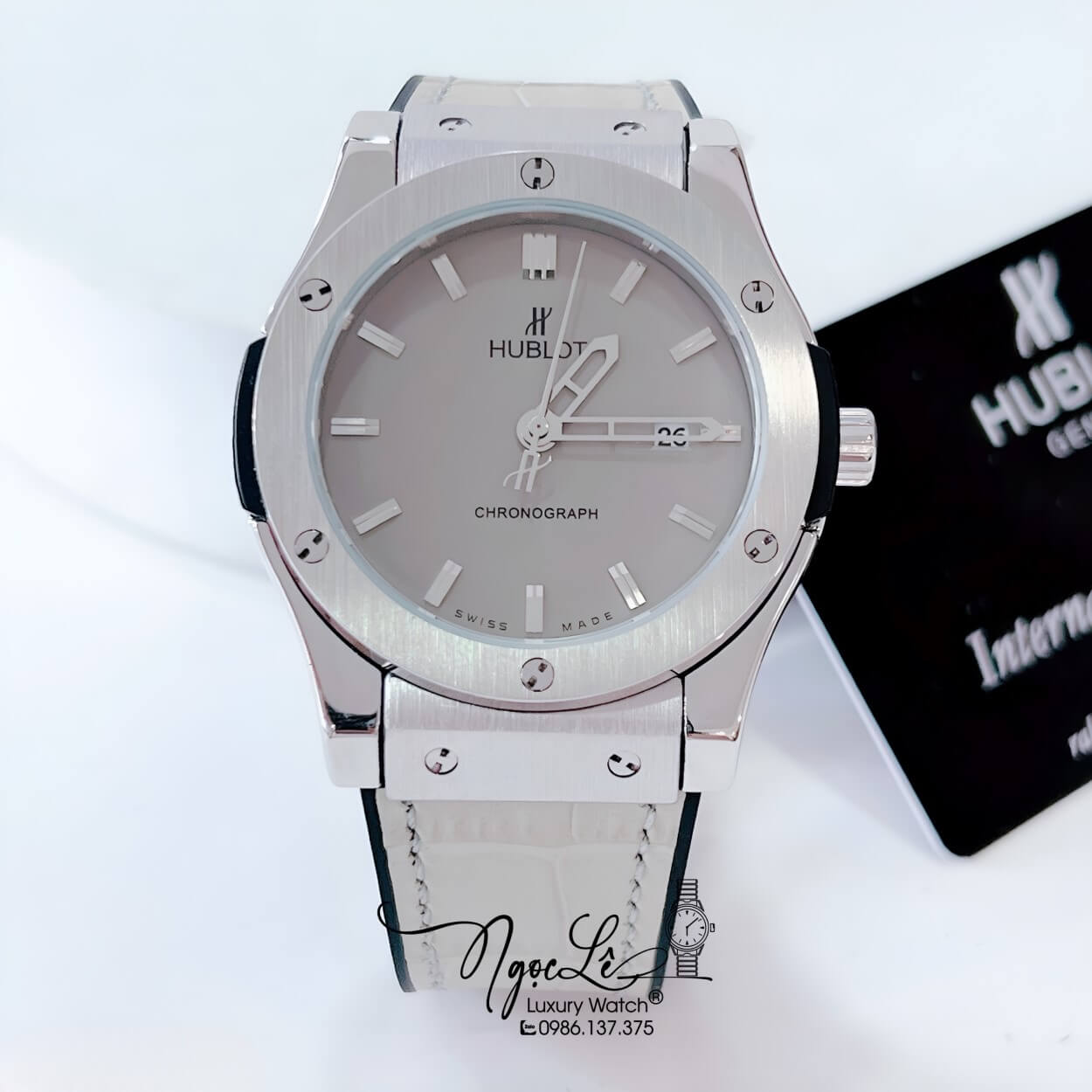 Đồng Hồ Hublot Classic Fusion Nam Máy Pin Dây Da Silicon Xám Vỏ Thép Mờ Size 42mm
